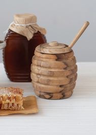 Teakwood Honey Jar with Wood Honey Dipper