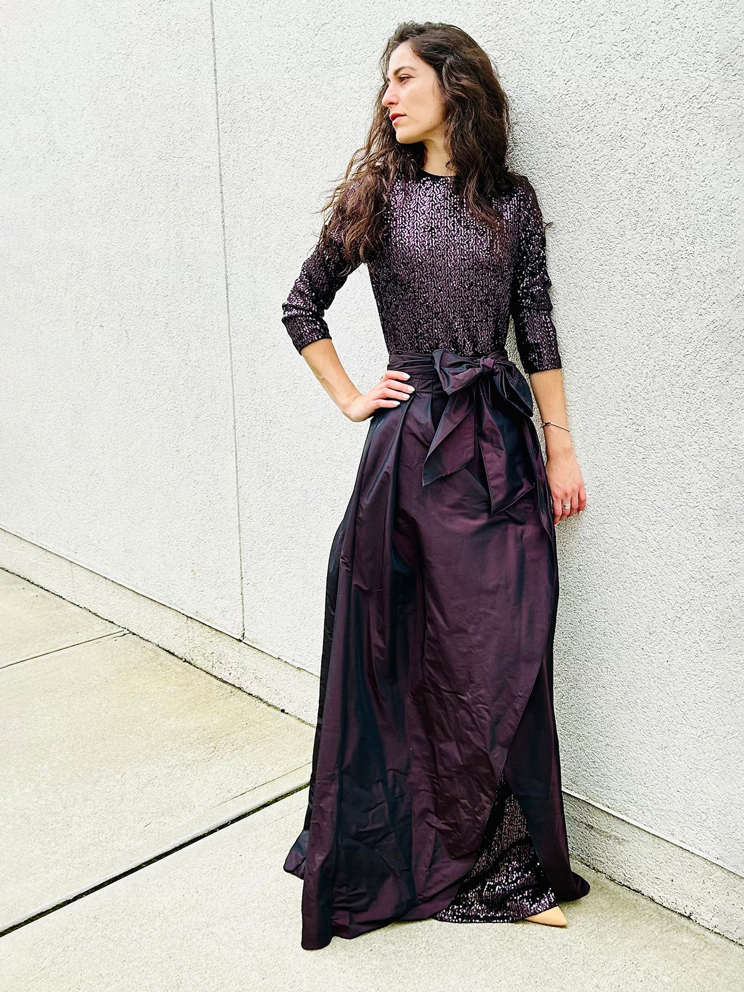 •LOOK: New from TeriJon is a wraparound skirt that is perfect for any special occasion. This skirt is ready to be paired up with a myriad of different tops. It will look fresh and new every time. How about a button down satin shirt? Or a cashmere sweater? A bodysuit with a little glitter and shine will certainly shake up the crowd. You can go in so many directions with this one versatile piece. Made of taffeta, it has a substantial weight but still moves and grooves with you. Outstanding look with your favorite heels. This is a classic piece every fashionista needs in her closet. Once you have it you will find many occasions to wear it and you will look stylish and current every time.