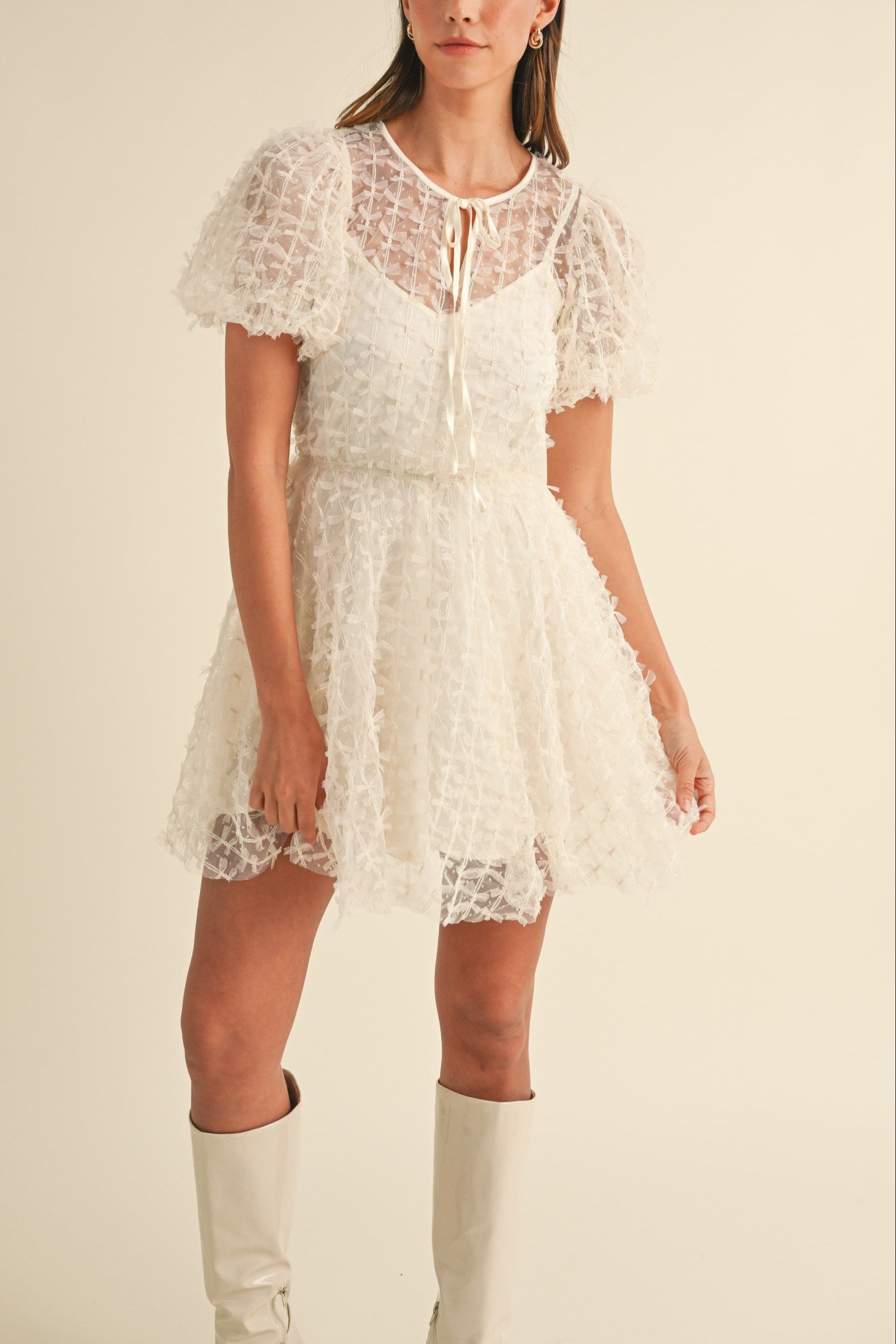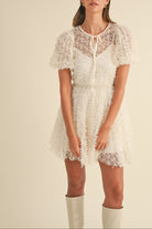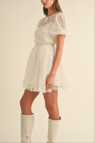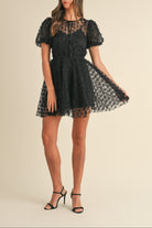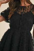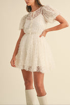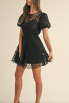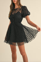 Textured Mesh Puff Sleeve Babydoll Dress