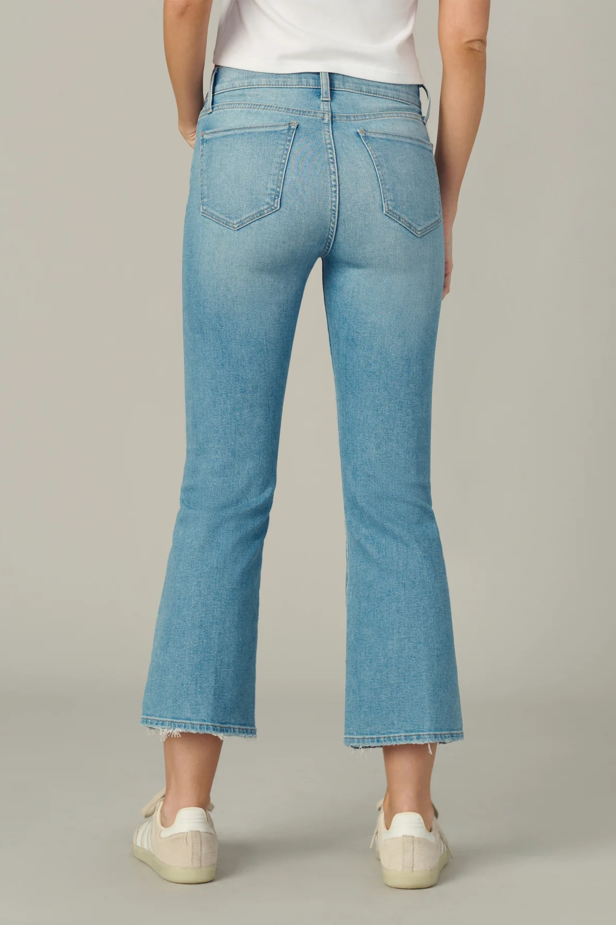 A high rise and slim fit through the waist, hip and thigh with a modest bootcut that hits above the ankle.