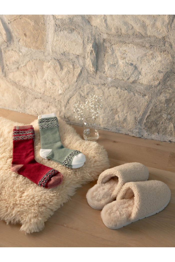 Say hello, your feet have a new best friend. The Plush Lounge Socks, as featured in Better Homes & Gardens, offers a variety of solid neutrals with a textural ribbed design allowing you to put your best foot forward every day. Details: XS/S: Women's shoe size 6-10 M/L: Men's shoe size 8-12 73% Polyester, 25% Viscose from Bamboo, 2% Elastane Crew Length Machine Wash & Tumble Dry Care: Machine wash cold; tumble dry low. FAQ: What sizes are available for the Plush Lounge Socks? The socks come in two sizes: XS/S (Women’s shoe sizes 6-10) and M/L (Men’s shoe sizes 8-12). What materials are the Plush Lounge Socks made from? Each sock is crafted with 73% Polyester, 25% Bamboo Viscose, and 2% Elastane for a cozy, ribbed design.