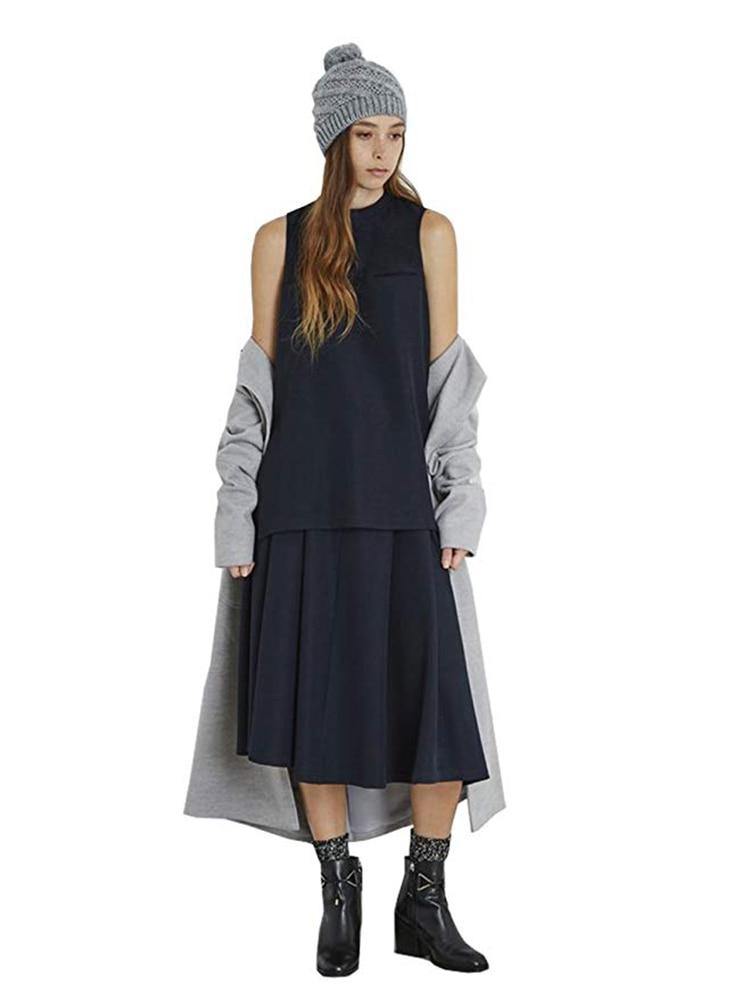 The Mercury Top is a tank top with a high rounded neckline, side splits and a chest pocket on the left hand side in a mid-weight waffle stretch fabric with lining