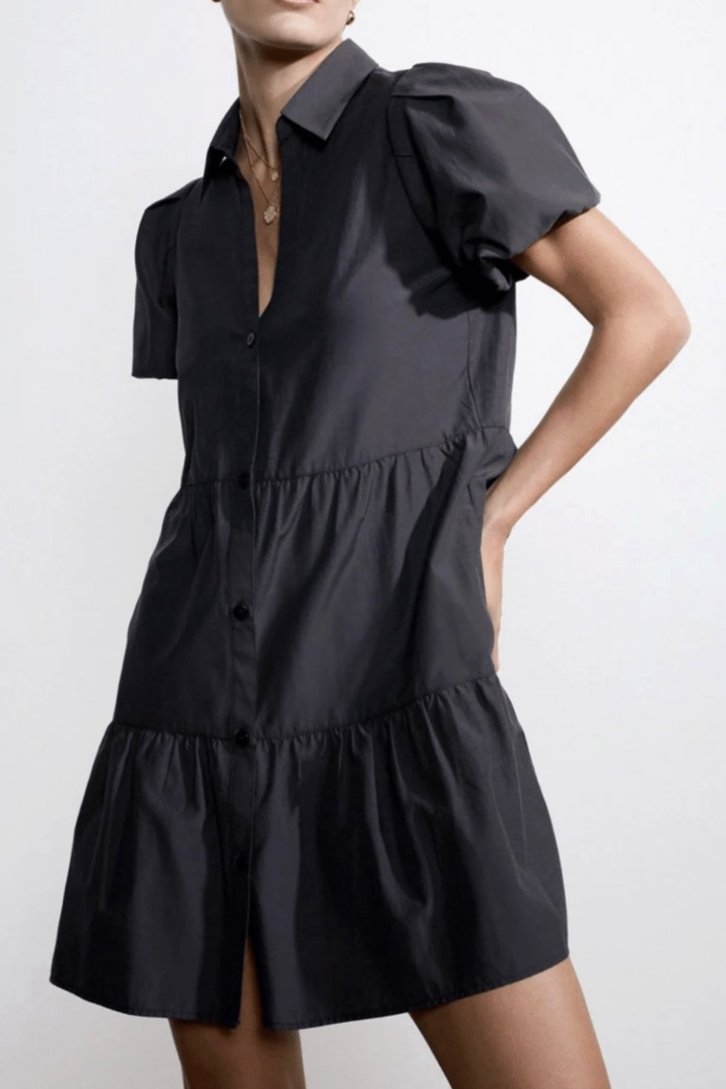 Our most loved Havana Dress is now available in a new mini length. Like its big sister, a tiered skirt and puff sleeves give a definitive feminine appeal, while the collared V-neck and button front placket, make it as chic as it is versatile. We added on seam pockets for added functionality making it perfect for every day, everywhere.