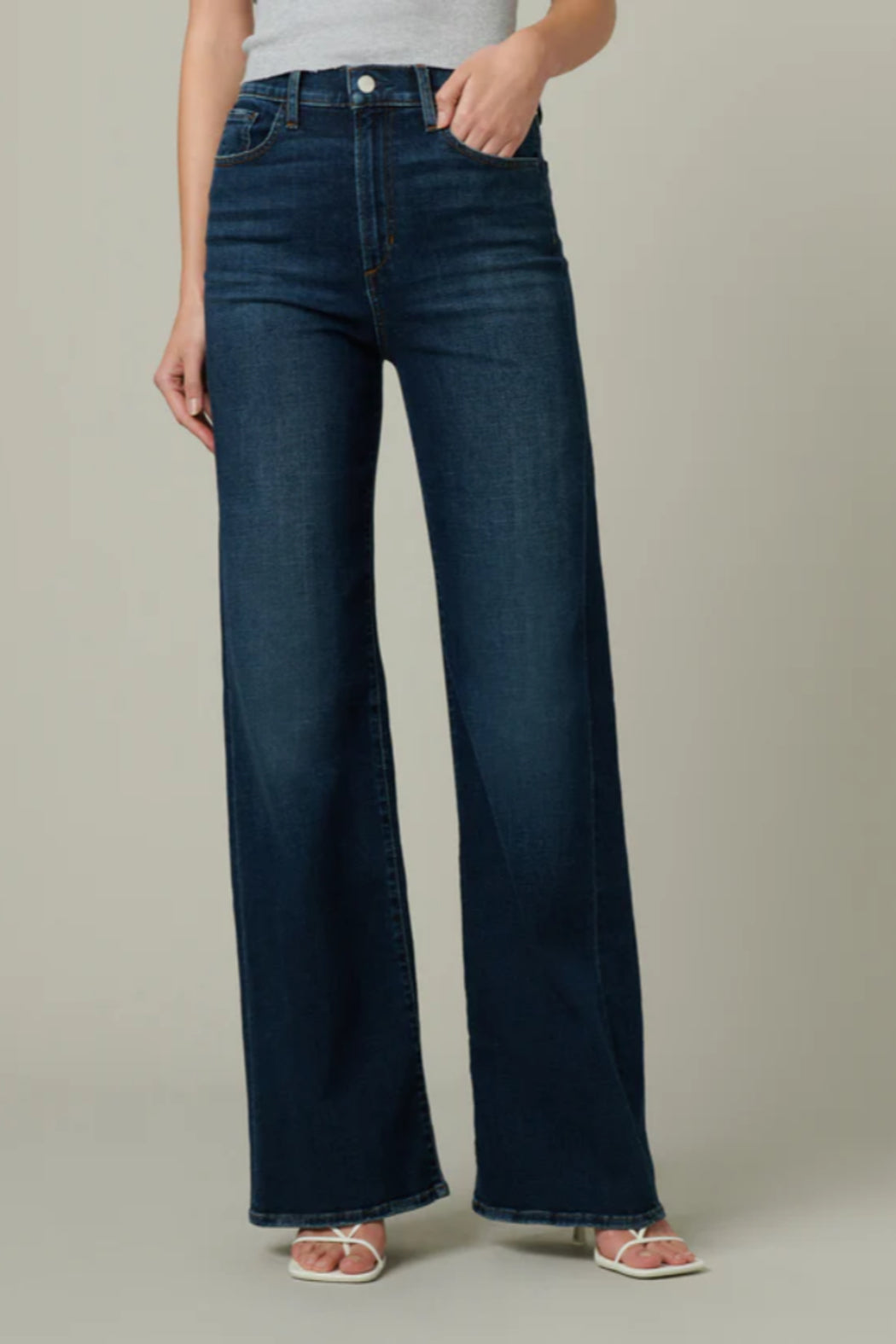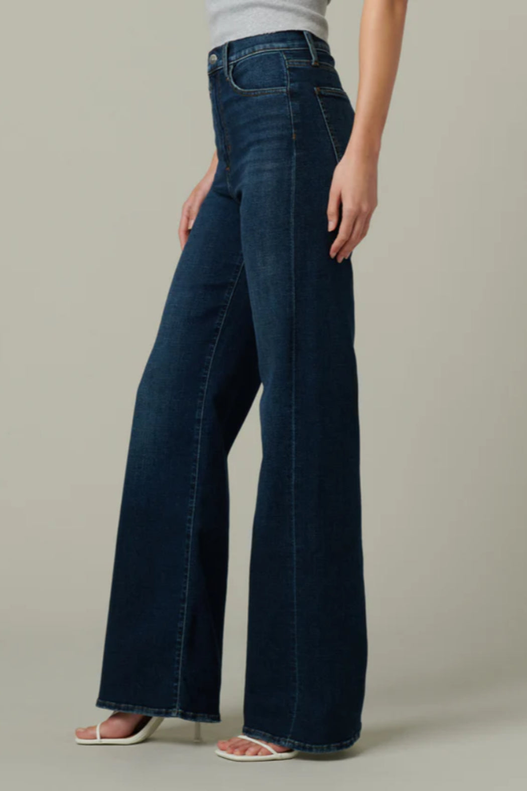 The high-rise, wide leg Mia jean has the comfort and ease of Flawless super-stretch denim. The dark-medium Oh My wash has lap whiskering and local wear patterns to create an authentic shade.