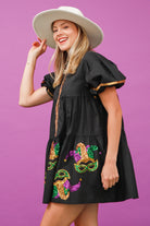 Sequin Mardi Gras Mask Poplin Shirt Dress
