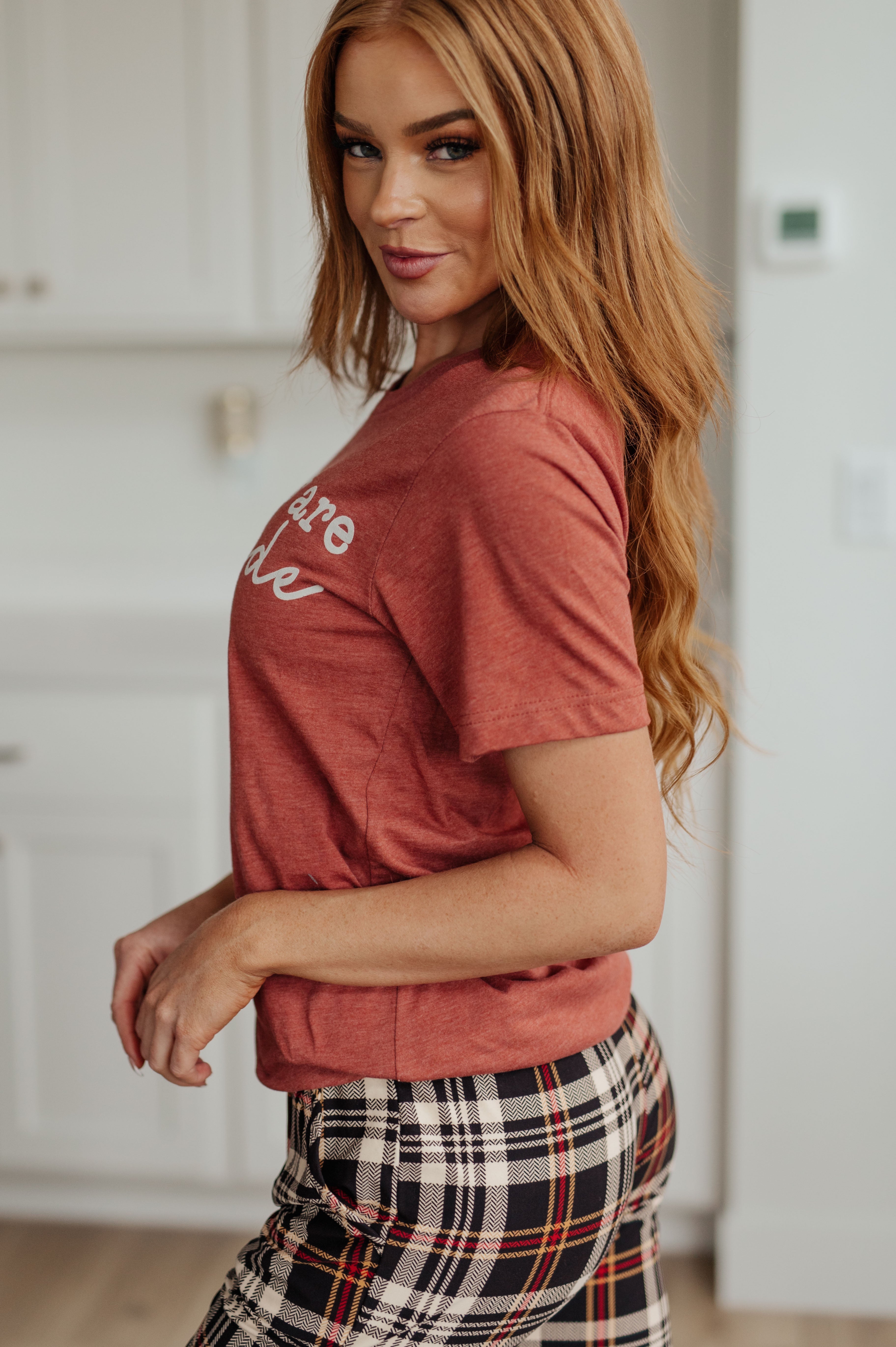Introducing our "These Rolls Are Homemade" Graphic Tee – this short-sleeved tee pairs perfectly with our lounge joggers, creating a cozy ensemble for lounging around the house after enjoying that Thanksgiving dinner with the family!