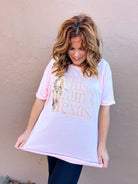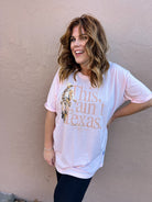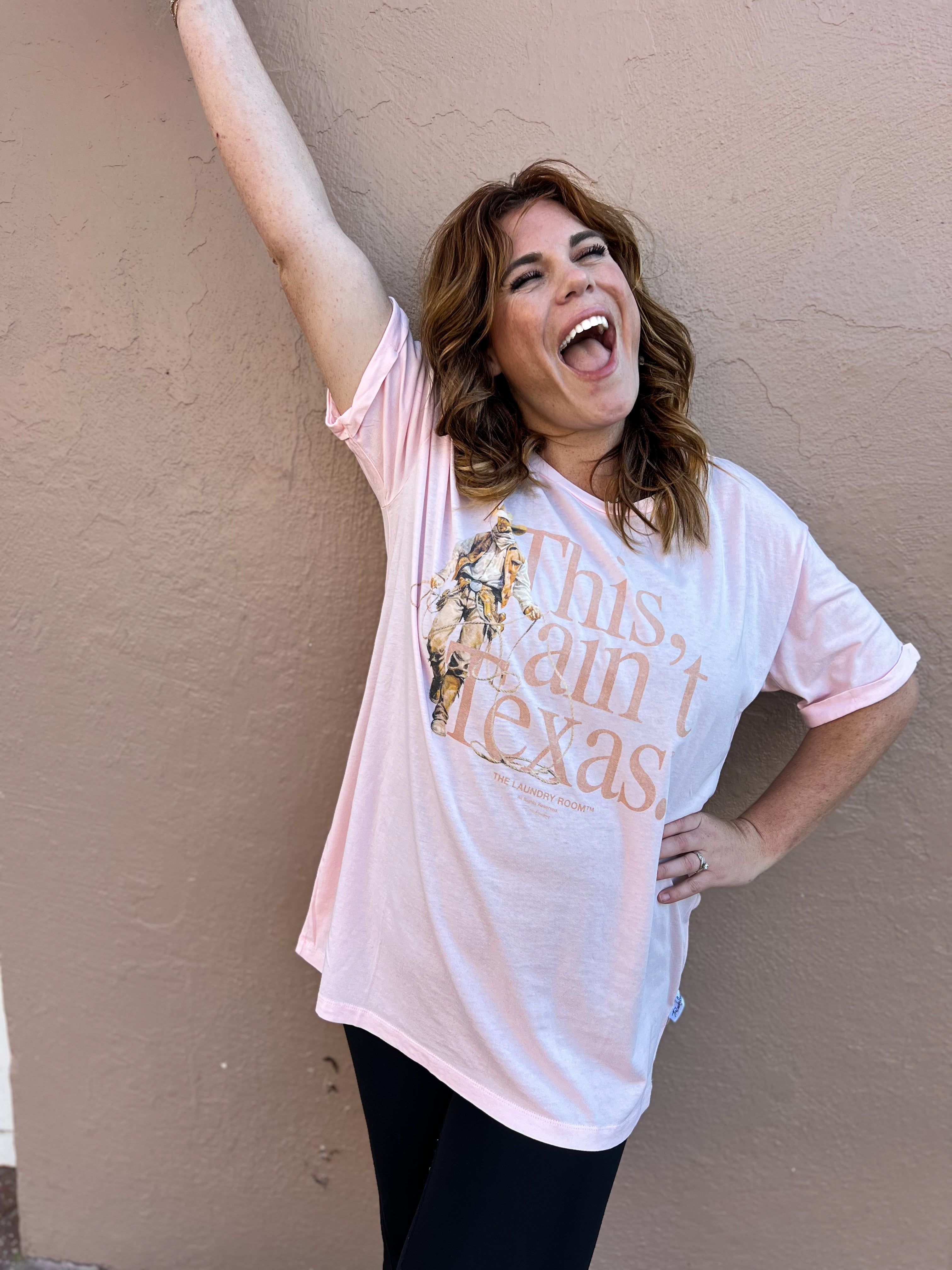 Y'all won't believe the comfort of this "This Ain't Texas Roper" oversized tee featuring a blush pink color and a western vibe. The Laundry Room brand guarantees a stylish and relaxed look. Grab one now and show off your unique style, partner!