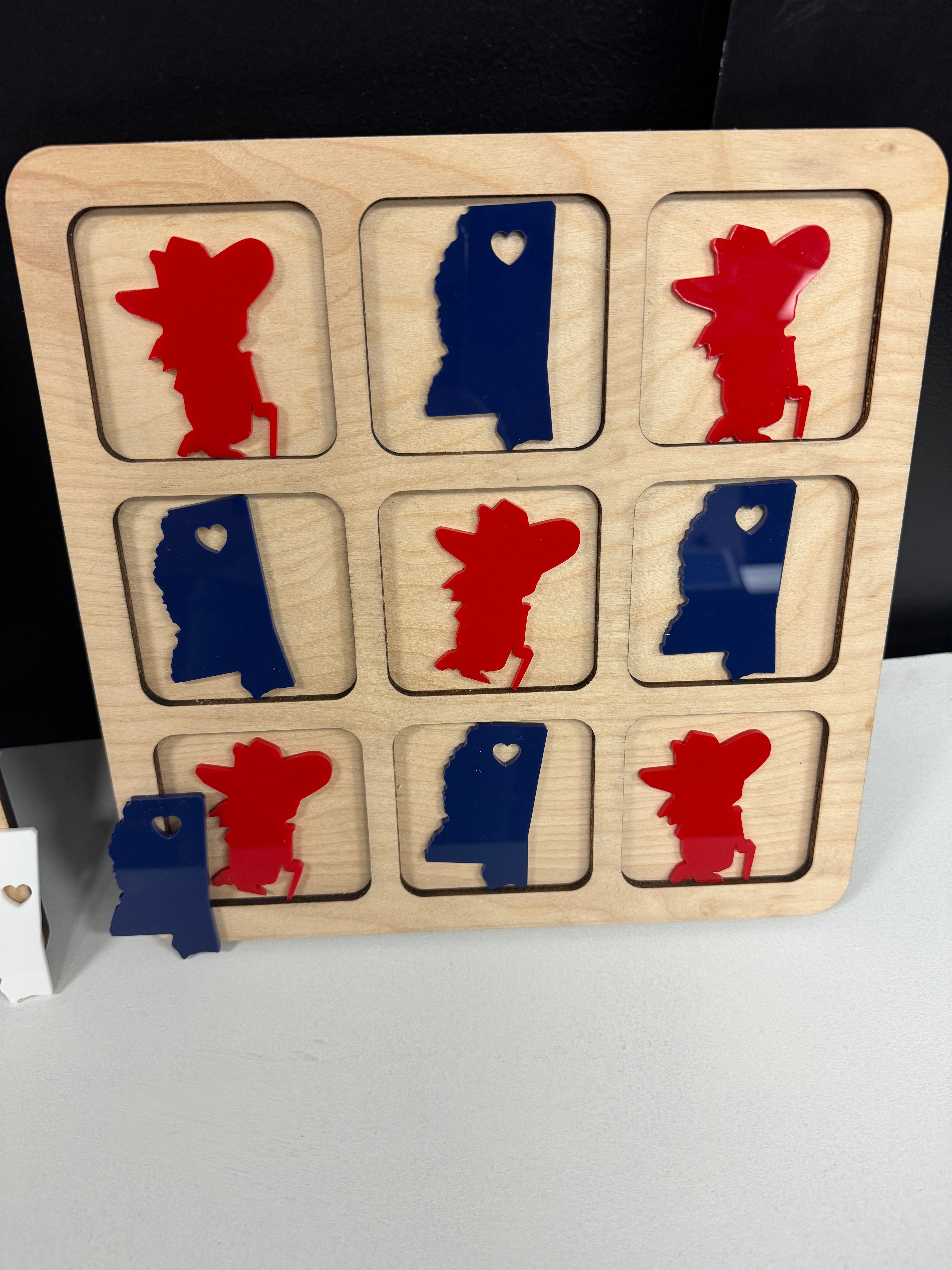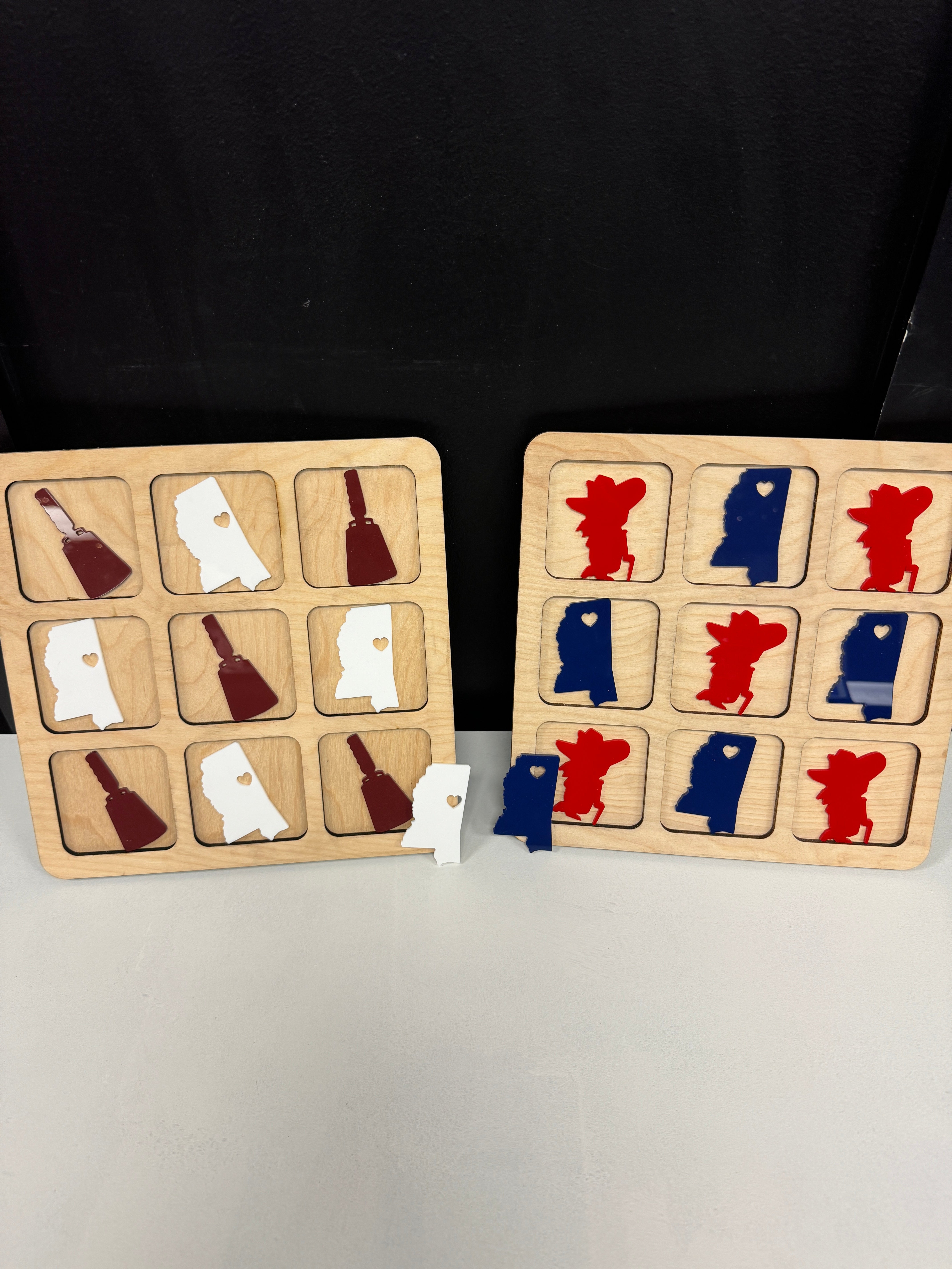 Experience the classic game of tic tac toe like never before with our beautifully crafted tic tac toe boards! Handmade with care, these boards will add a touch of charm and fun to any game night. Perfect for the college team enthusiasts. Get yours today!