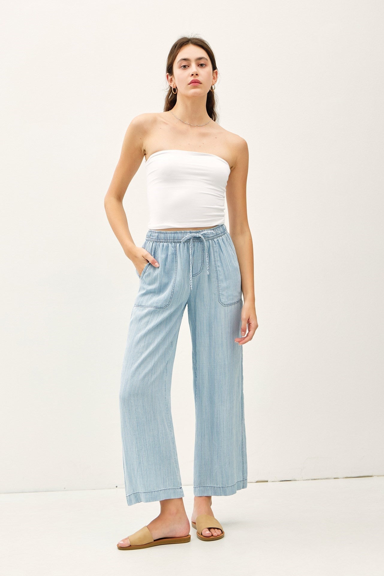 Stay stylish and comfortable all summer long in our Tidal Lines Striped Pants! Made with lightweight and airy tencel, these pull on pants feature a convenient elastic drawstring waistband and functional pockets. Perfect for vacations, these unlined pants are a must-have. 🌊🌴