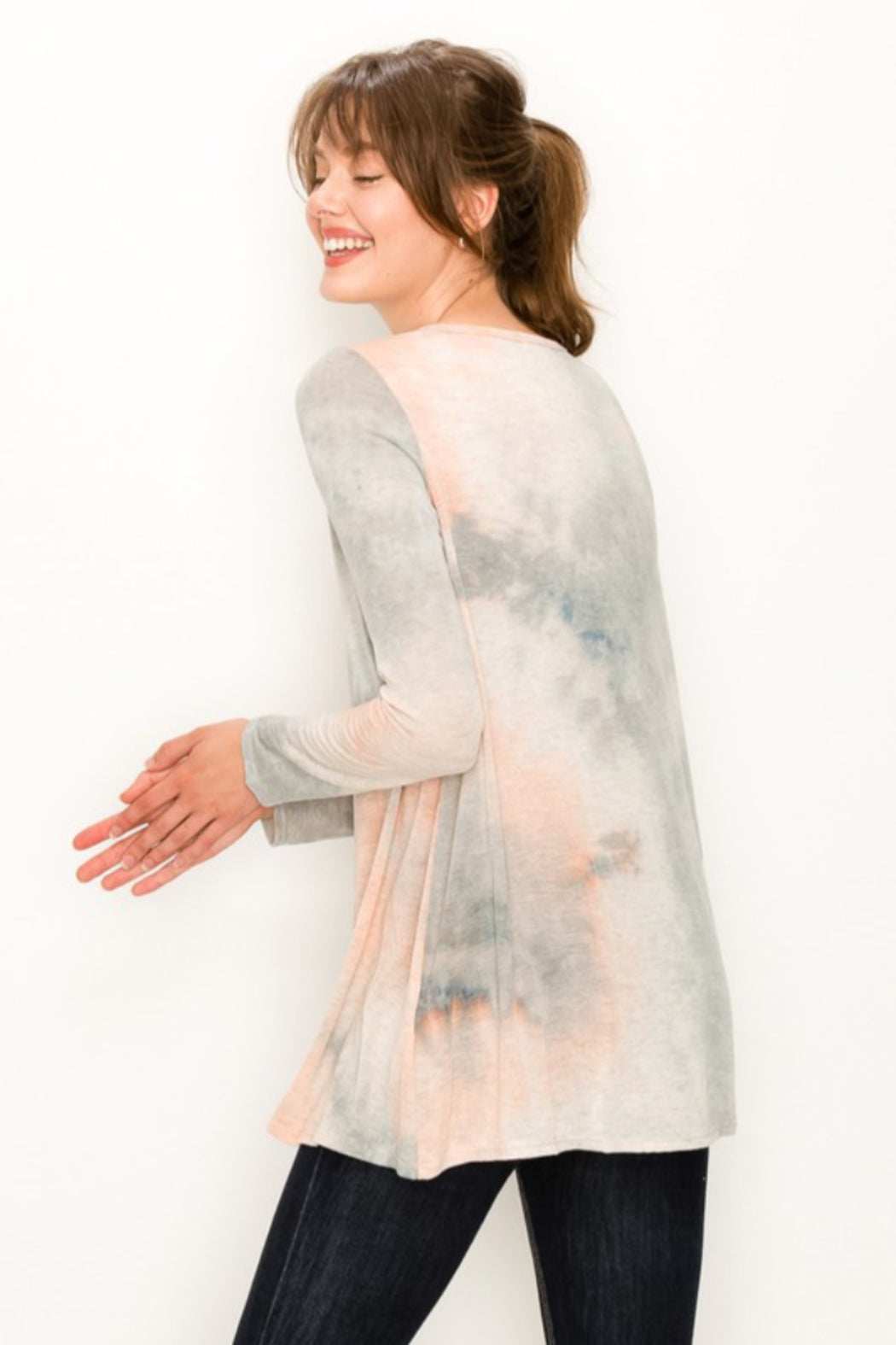 This top features: - Tie dye soft brushed hacci fabric - Lightweight - Long sleeve - Wide crew neck - A line design - Runs true to size