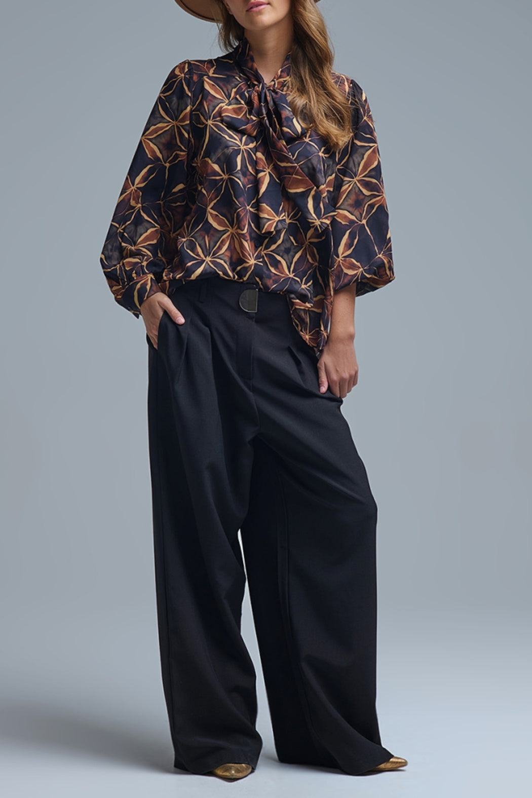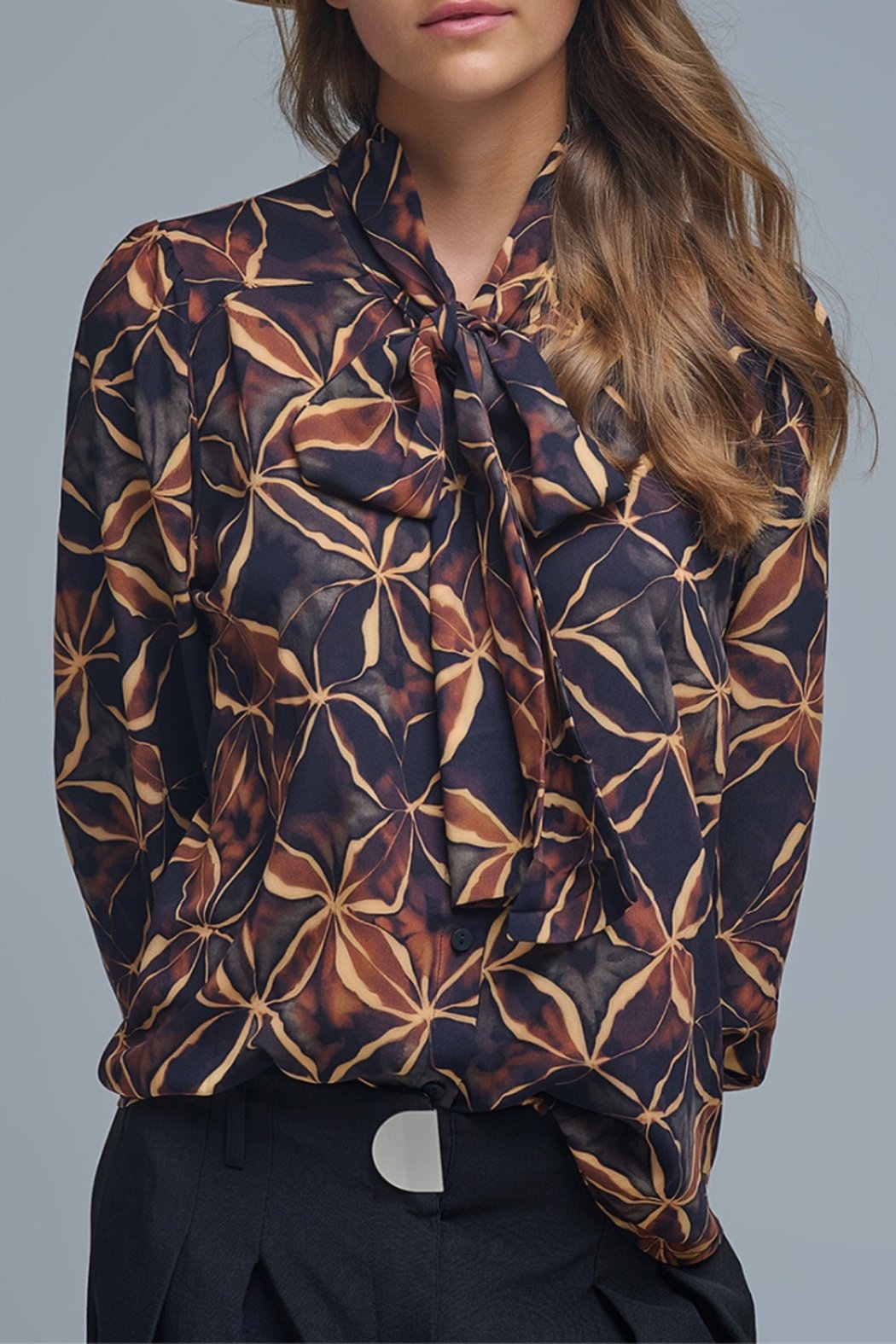 This Tie-Neck Printed Blouse is a lightweight, long-sleeve shirt with a feminine bow tie and an all-over abstract floral print. The tailored silhouette and shirt collar make it polished enough for the office yet easy to wear with jeans for weekends. Q2 designed this blouse to balance classic workwear details with a modern, graphic pattern. Small/6 Medium/8 Large/10
