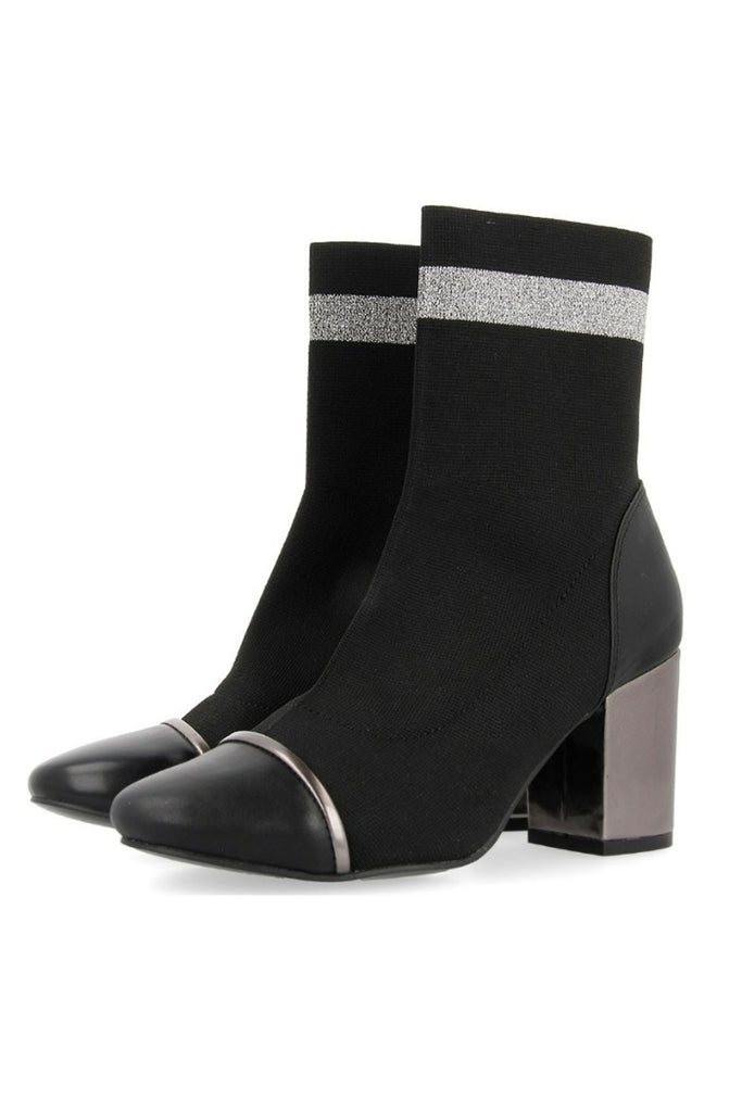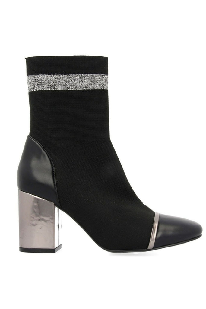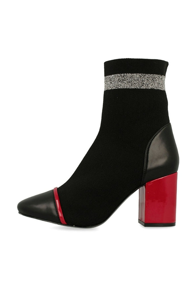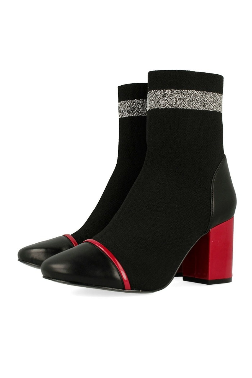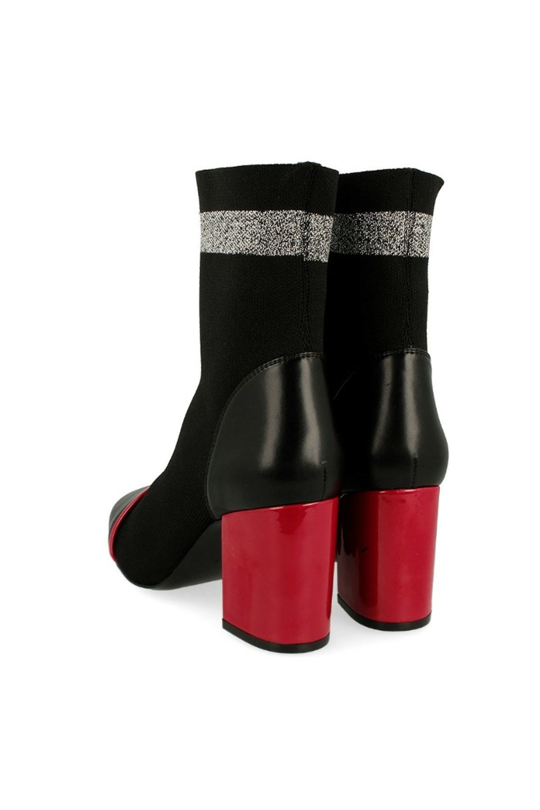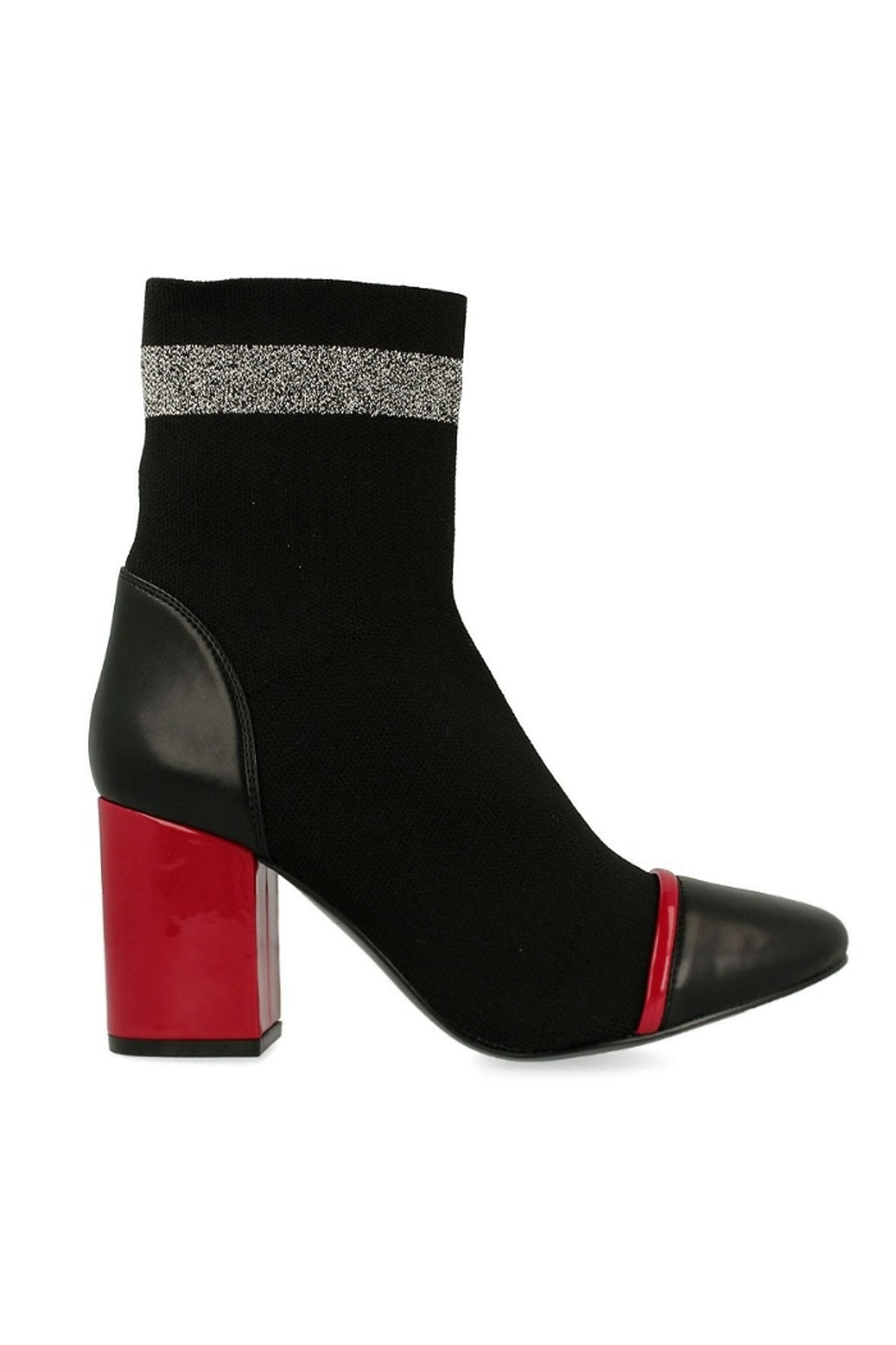 Sock ankle boots in black with red details. Squared mid heel of 7cm. So beautiful!