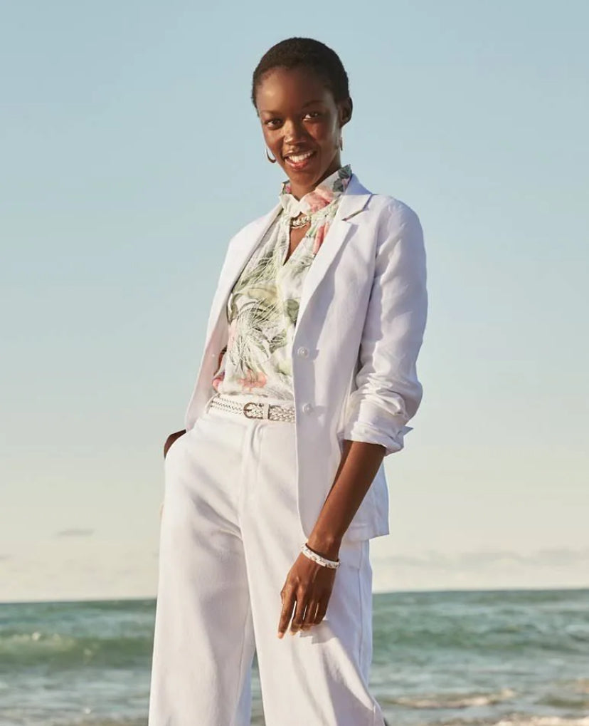 Fall for the tailored silhouette of this linen-blend blazer that's ideal from work to weekend.