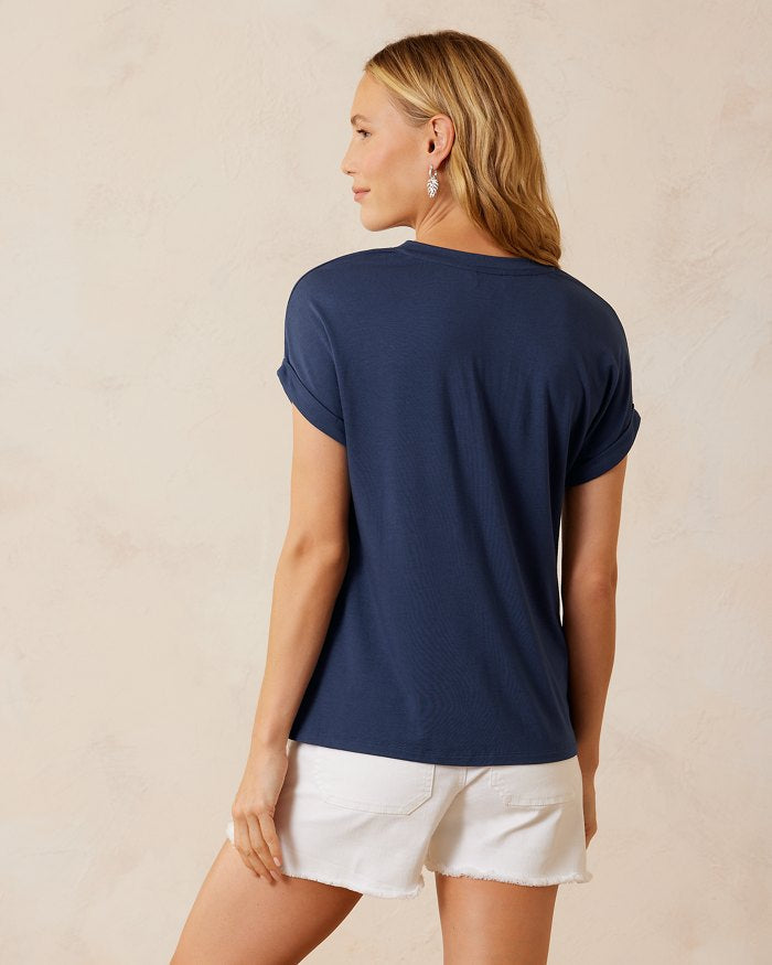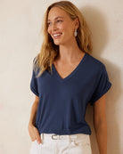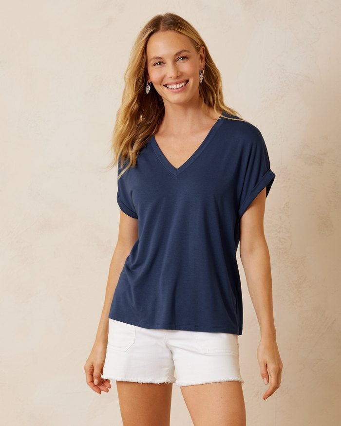Your basics deserve the softest fabrics, try this modal-blend t-shirt with a touch of stretch. A flattering V-neckline elongates the body and perfectly showcases short length necklaces.