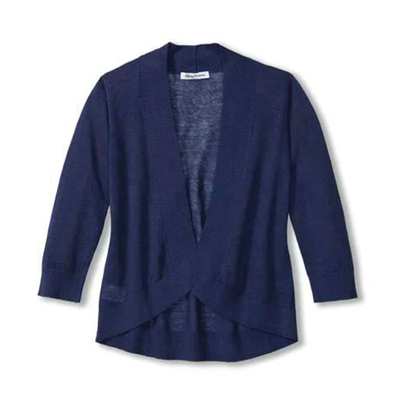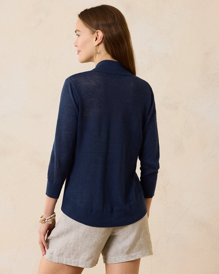 Perfect for seaside brunch or sunset strolls, this open cardigan is a lovely layering piece fit for any time of day. Fashioned from lightweight linen, it has a beautiful drape and pairs easily with dresses, skirts, or anything else in your vacation repertoire. Ribbing at the placket, hem, and cuffs adds a modern, stylish accent.