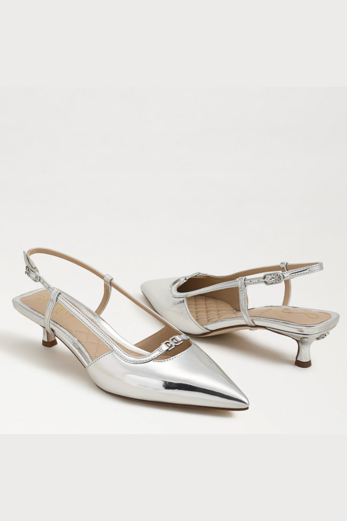 Toni Slingback Kitten Heel - Soft Silver Metallic