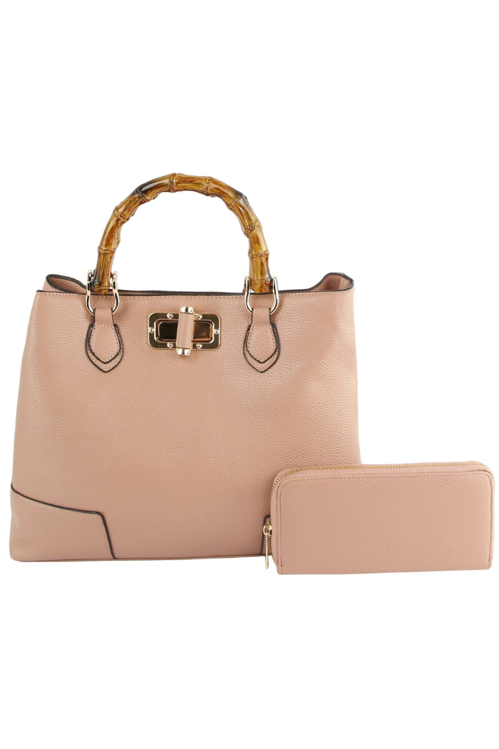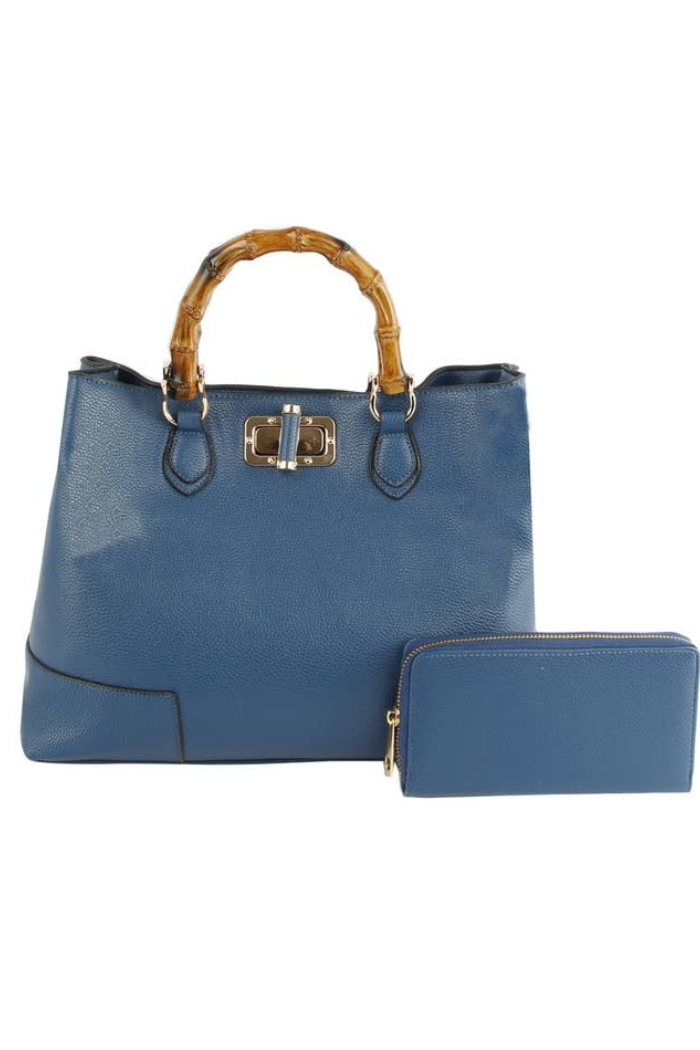 Classic pebbled textured, slim structured with trendy cut-out hinged handles, flat bottom with studs, with matching wallet. Perfect for everyday living, dating, shopping, working, traveling, vacation etc.