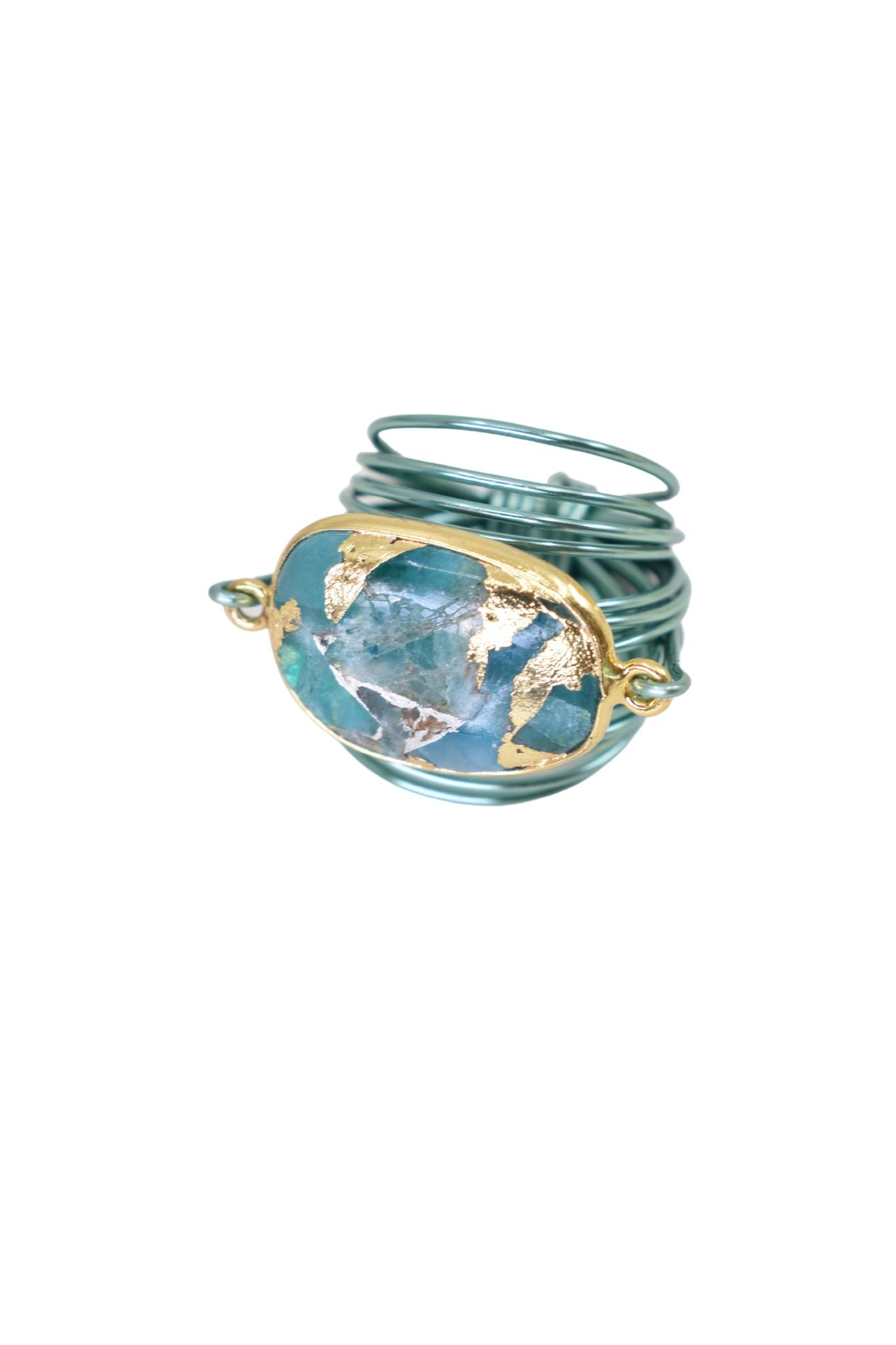 Torrey Light Blue Wire Wrap Ring with Teal Mojave Copper Turquoise