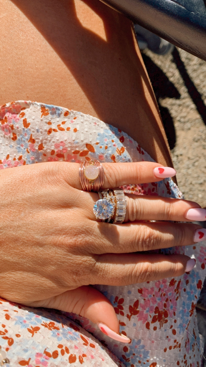 Rose gold wire ring with a semi-precious and unique White Druzy stone.
