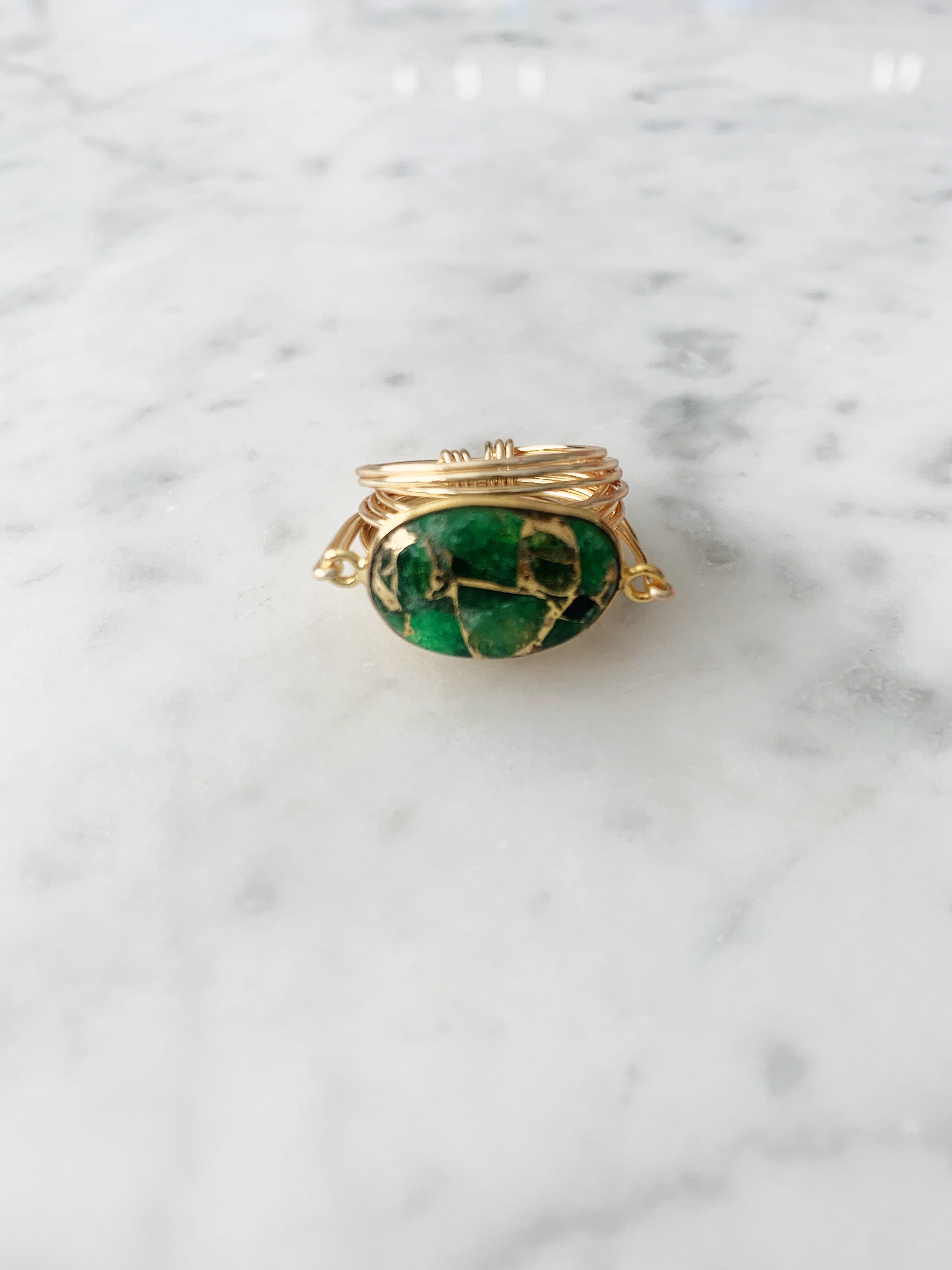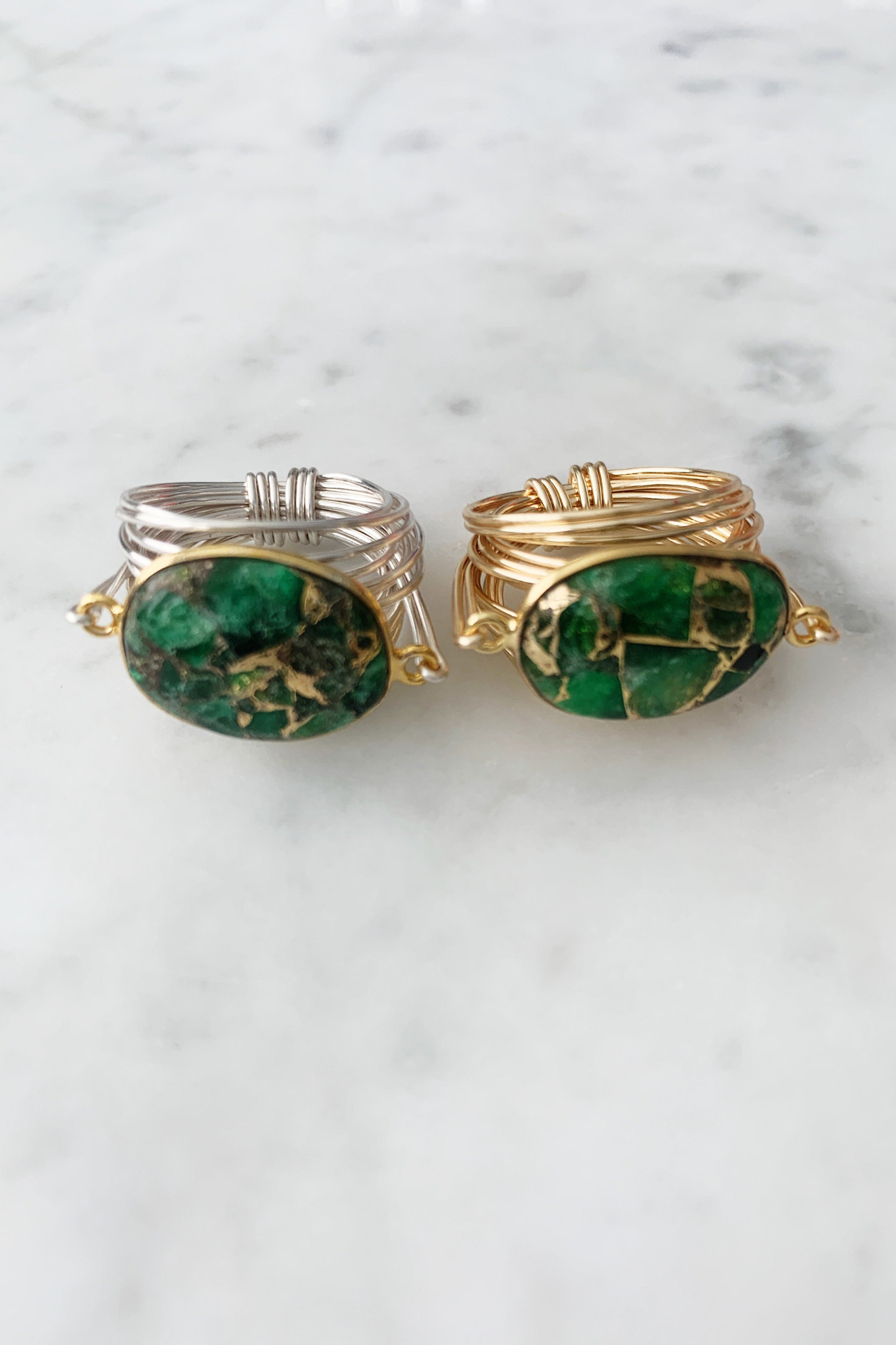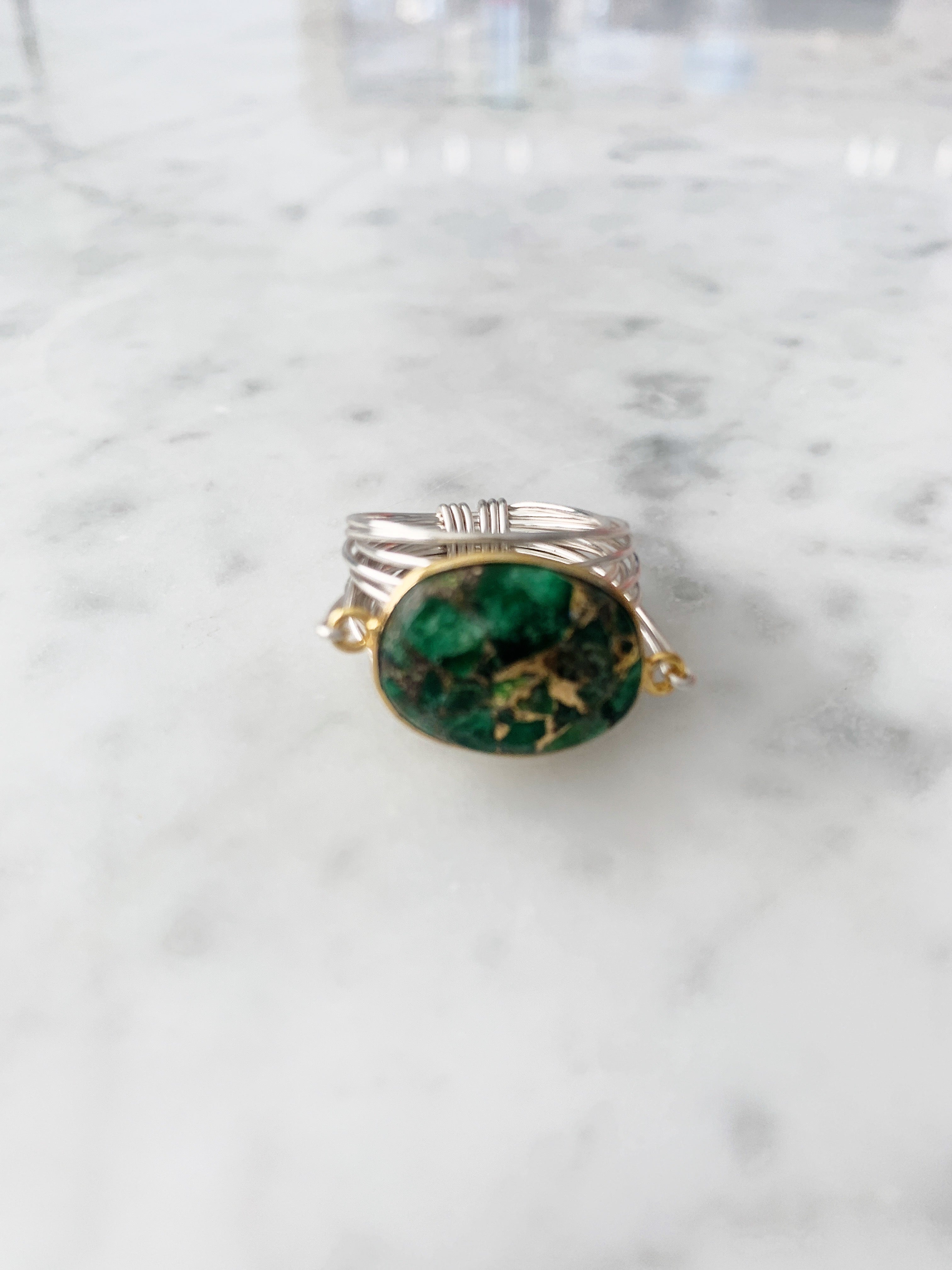 Torrey Wire Wrap Ring with Green Mojave Copper Turquoise