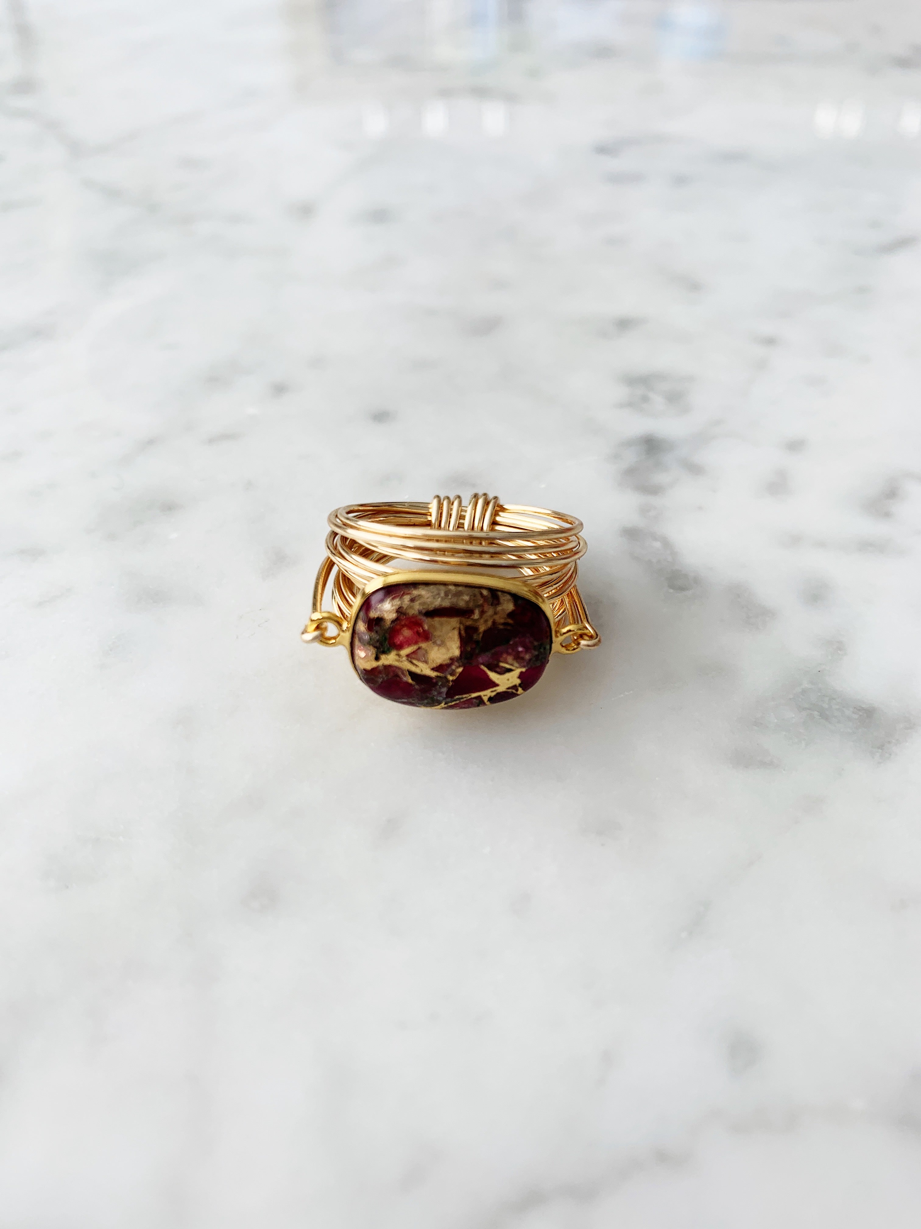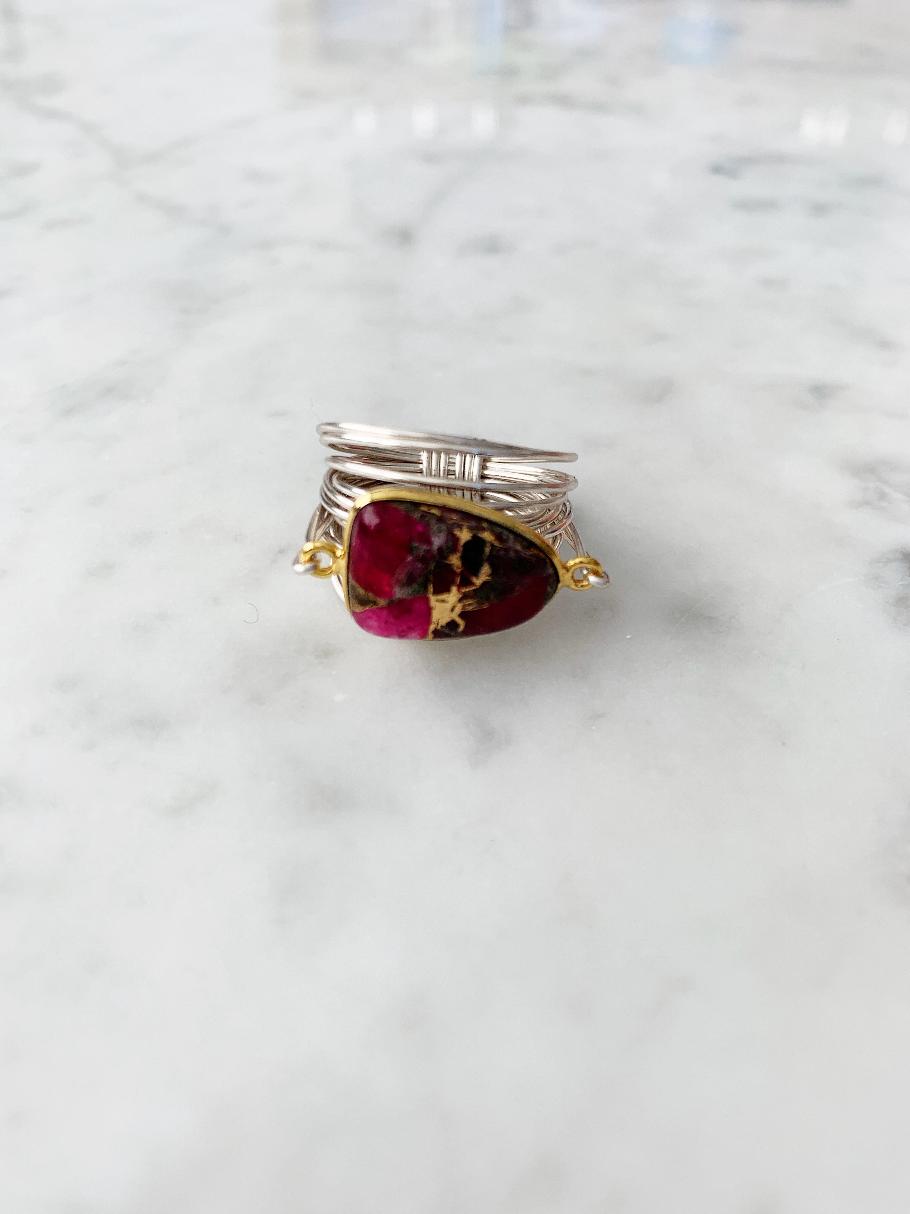 Torrey Wire Wrap Ring with Red Mojave Copper Turquoise