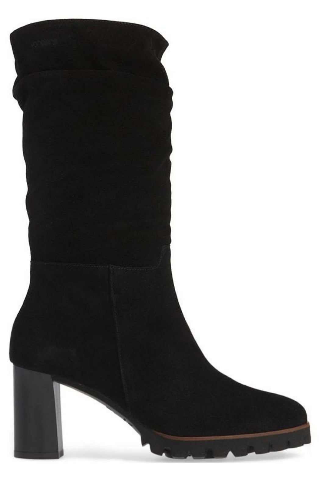 A slouchy silhouette and stacked demiblock heel bring trend-savvy style to a versatile boot furnished with a memory-gel footbed and lightweight flexible sole for all-day comfort.