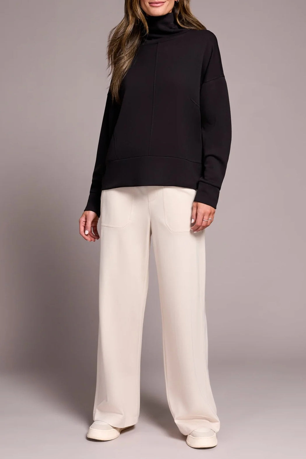 Experience easygoing comfort and refined style with these wide-leg lounge pants. Made from a soft, fluid knit fabric, they feature a relaxed fit and subtle pleats at the waist for graceful movement. The high-rise design and flowing silhouette flatter effortlessly, making them perfect to pair with anything from relaxed pullovers to sleek tanks. Ideal for lounging, errands, or travel, these versatile pants bring all-day ease with a contemporary, relaxed vibe.