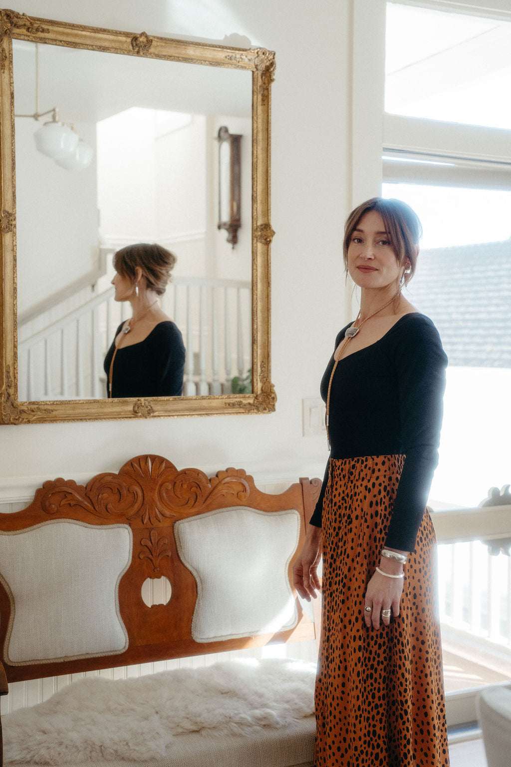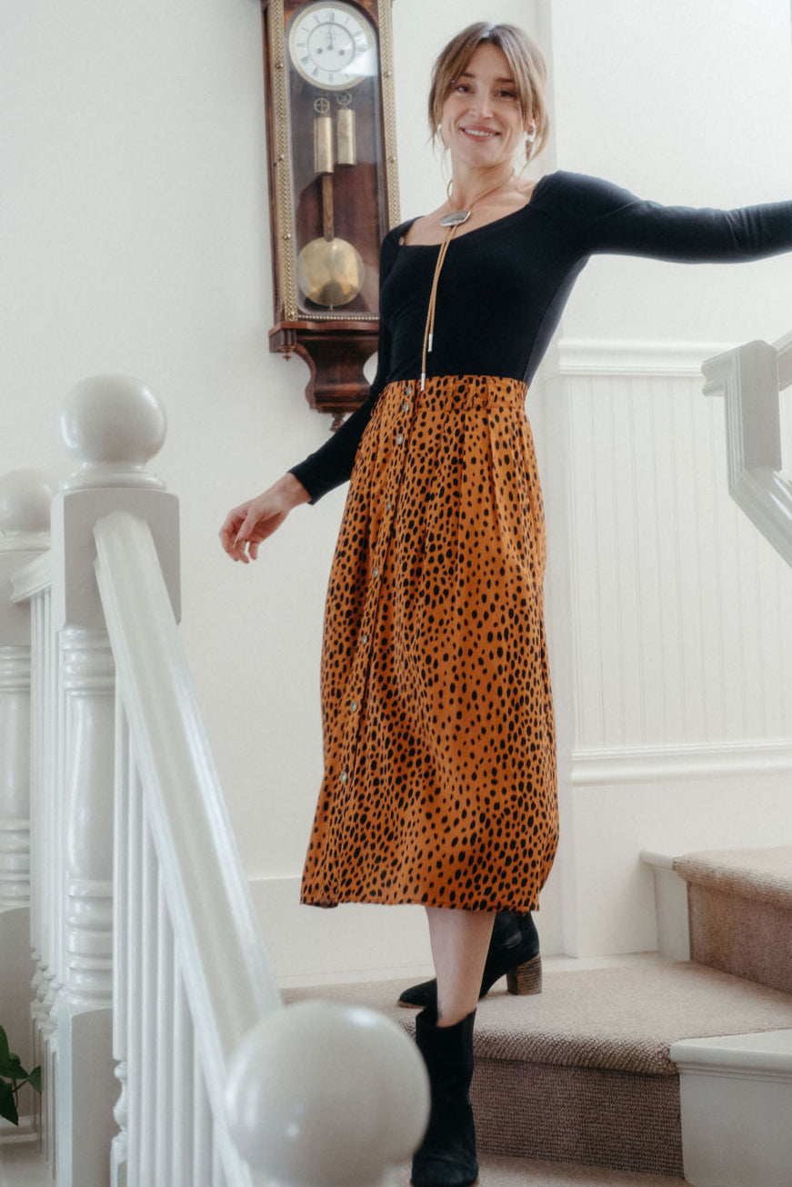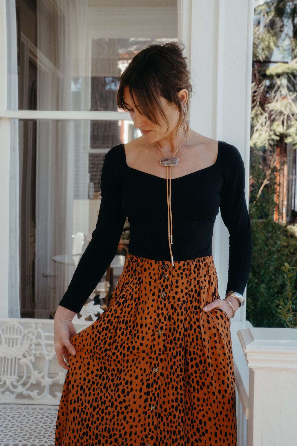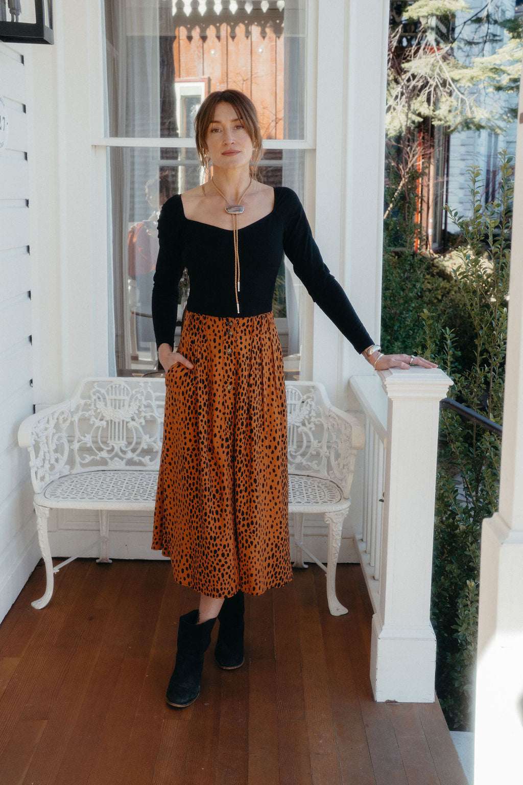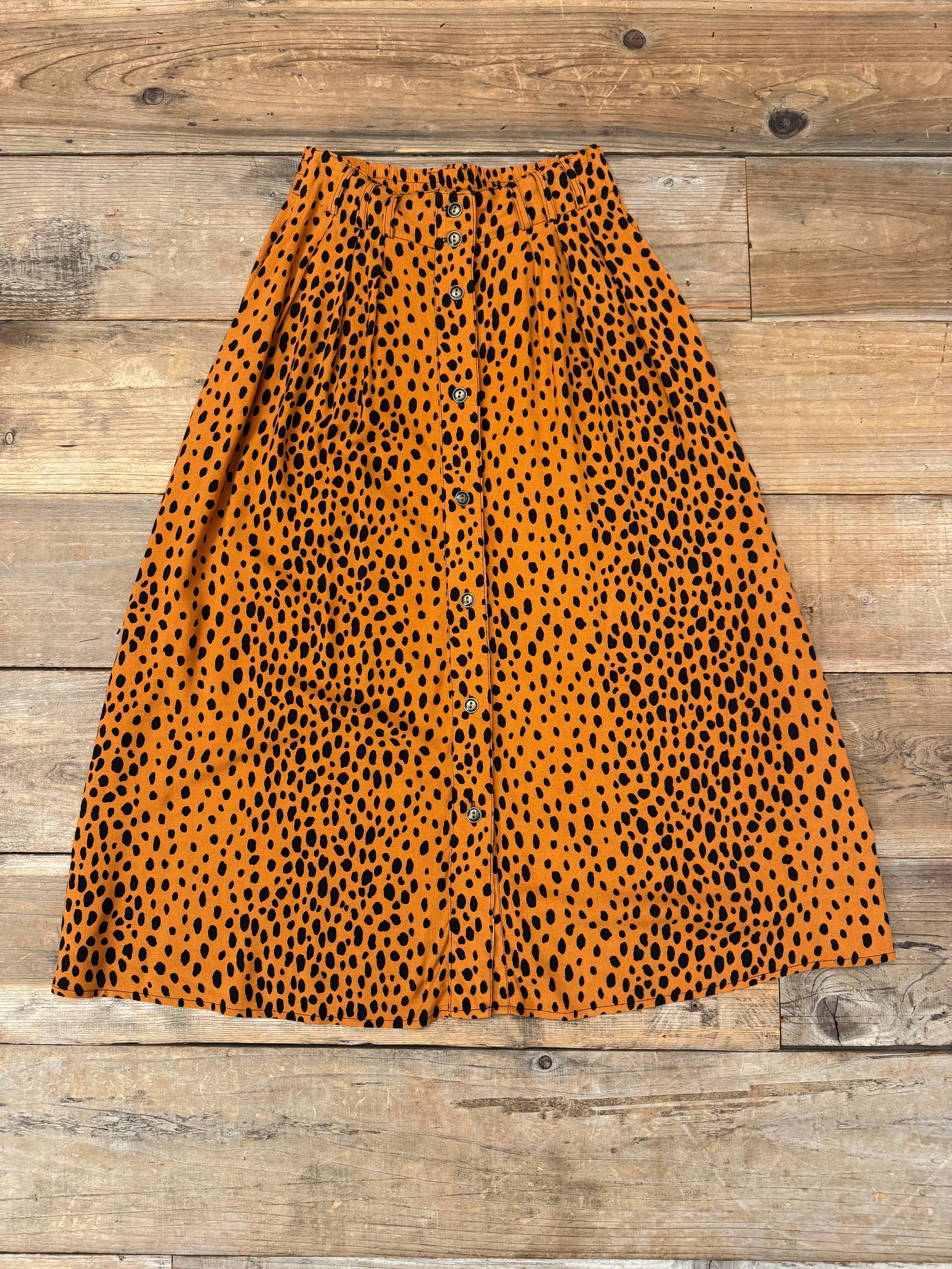 Made from a lightweight deadstock rayon fabric with cheetah like polka dots