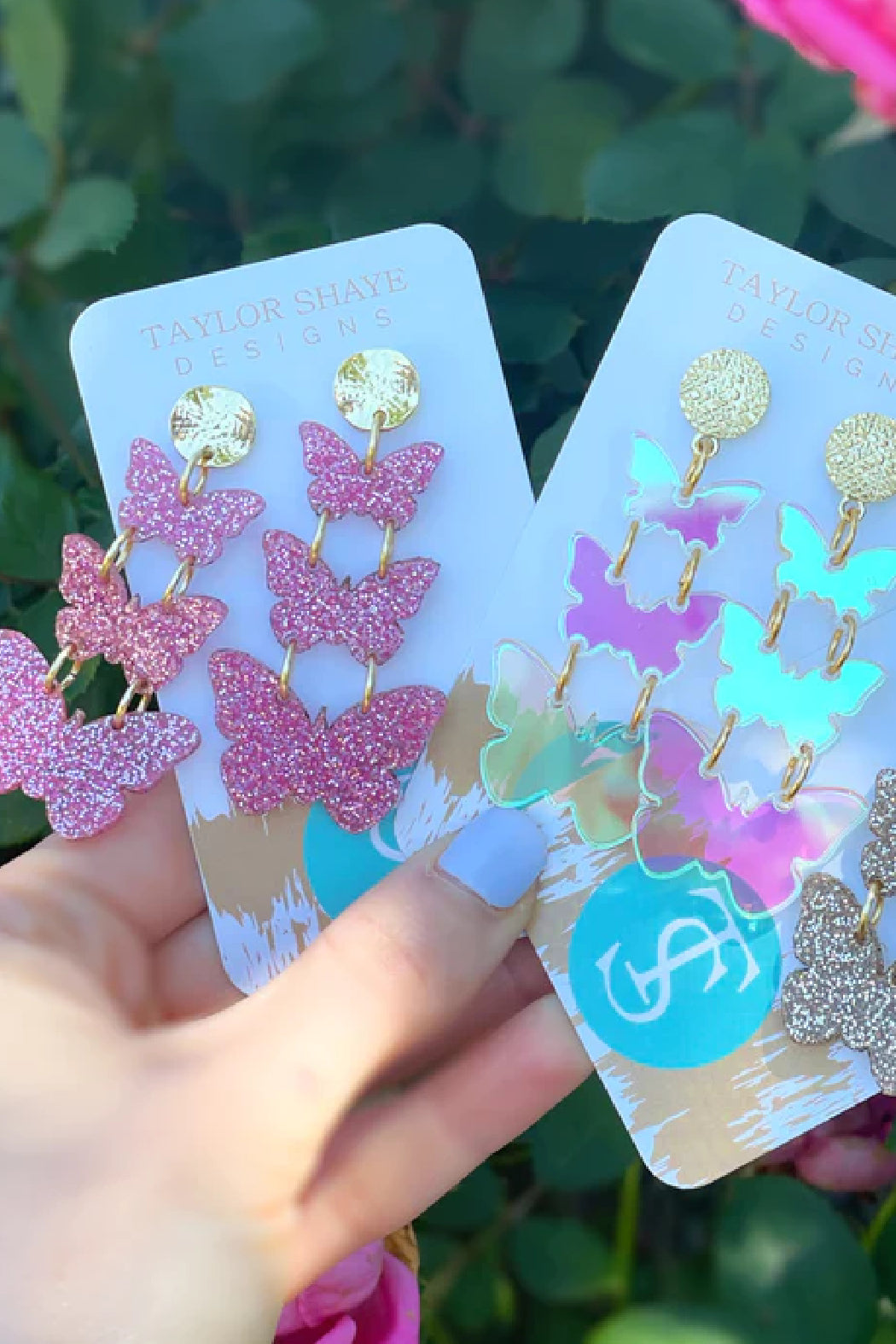 Our Triple Butterfly Acrylic Drops are super fun and will make any girl feel good!