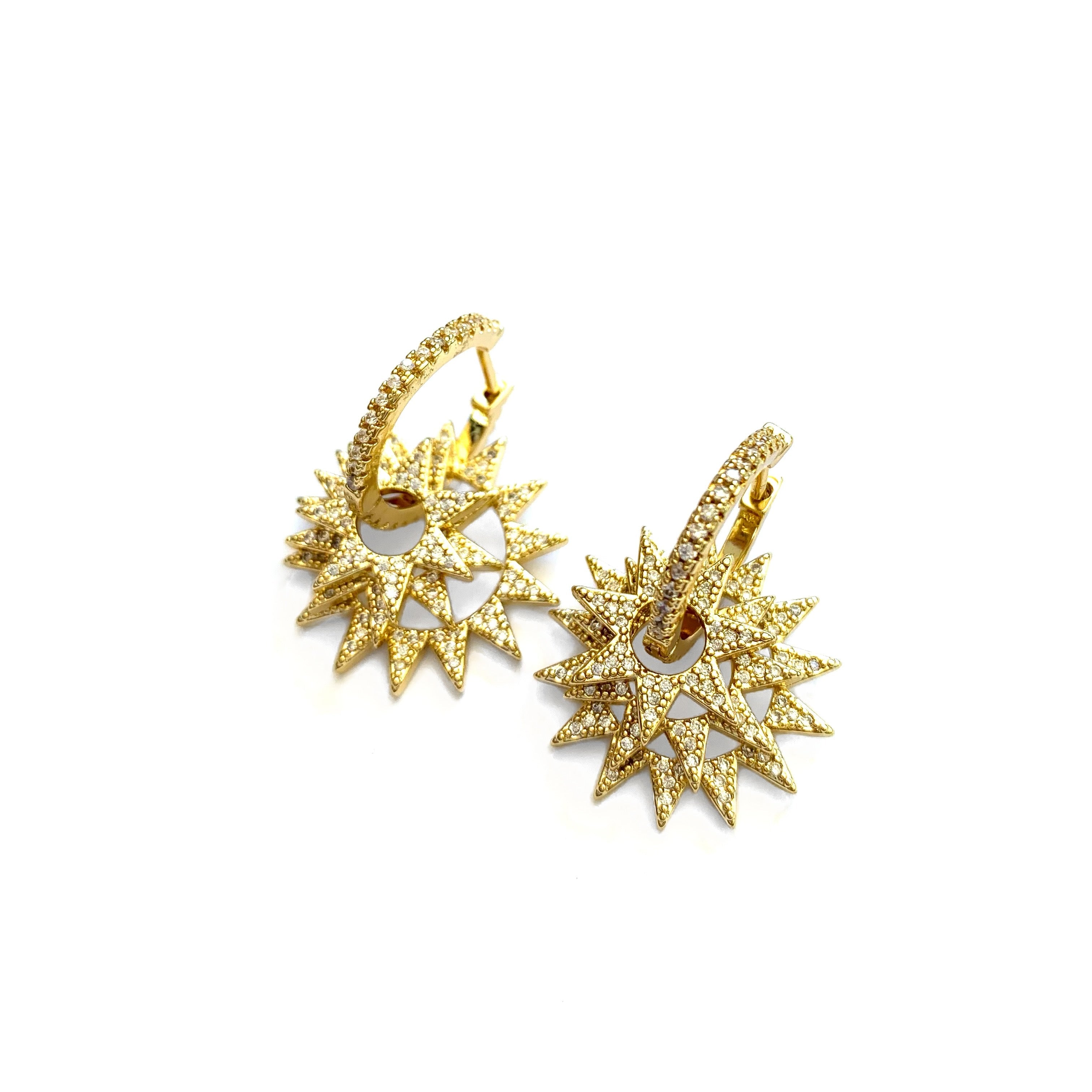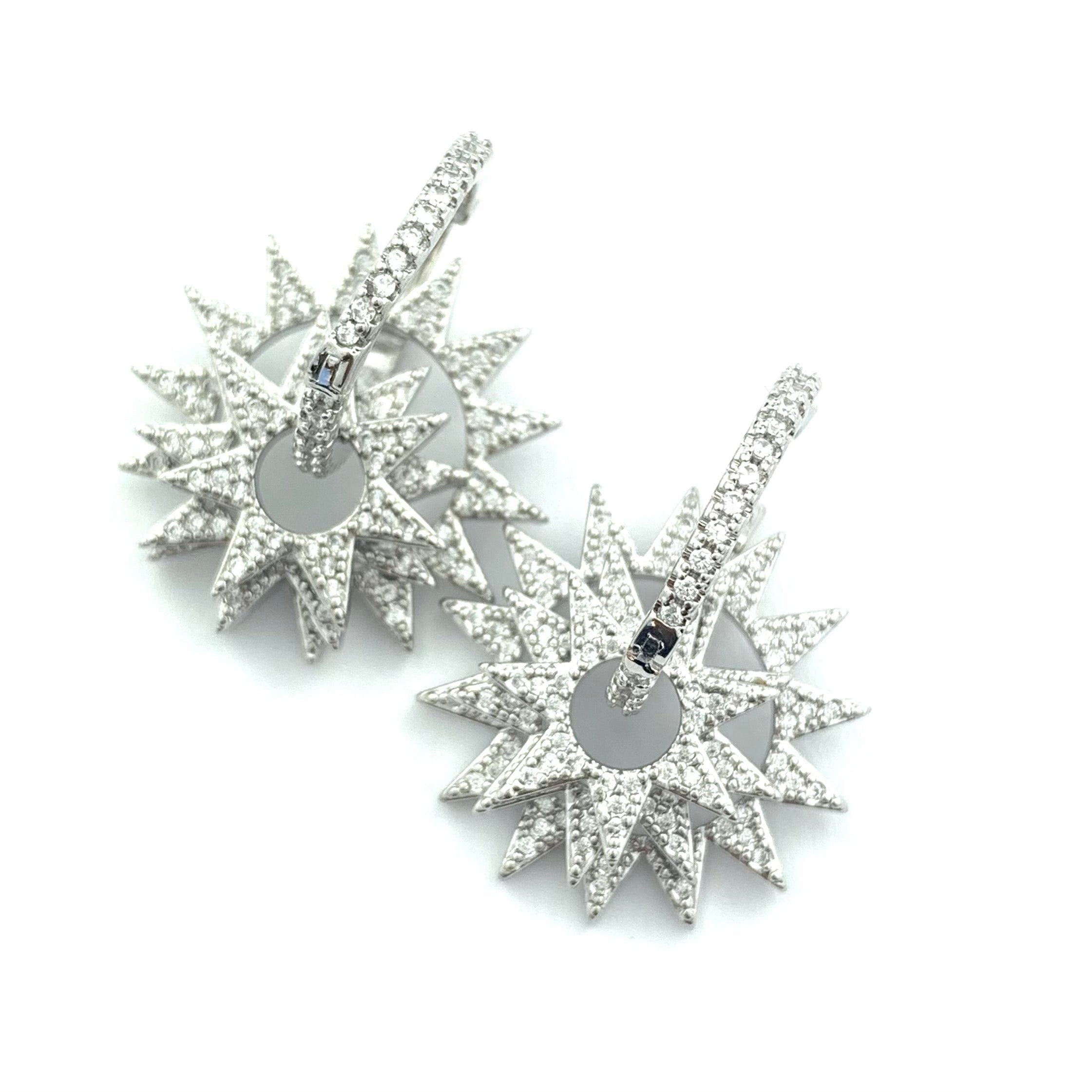 CZ Huggies with 3 removable Burst, wear them with all three burst or none at all. Super versatile earring.