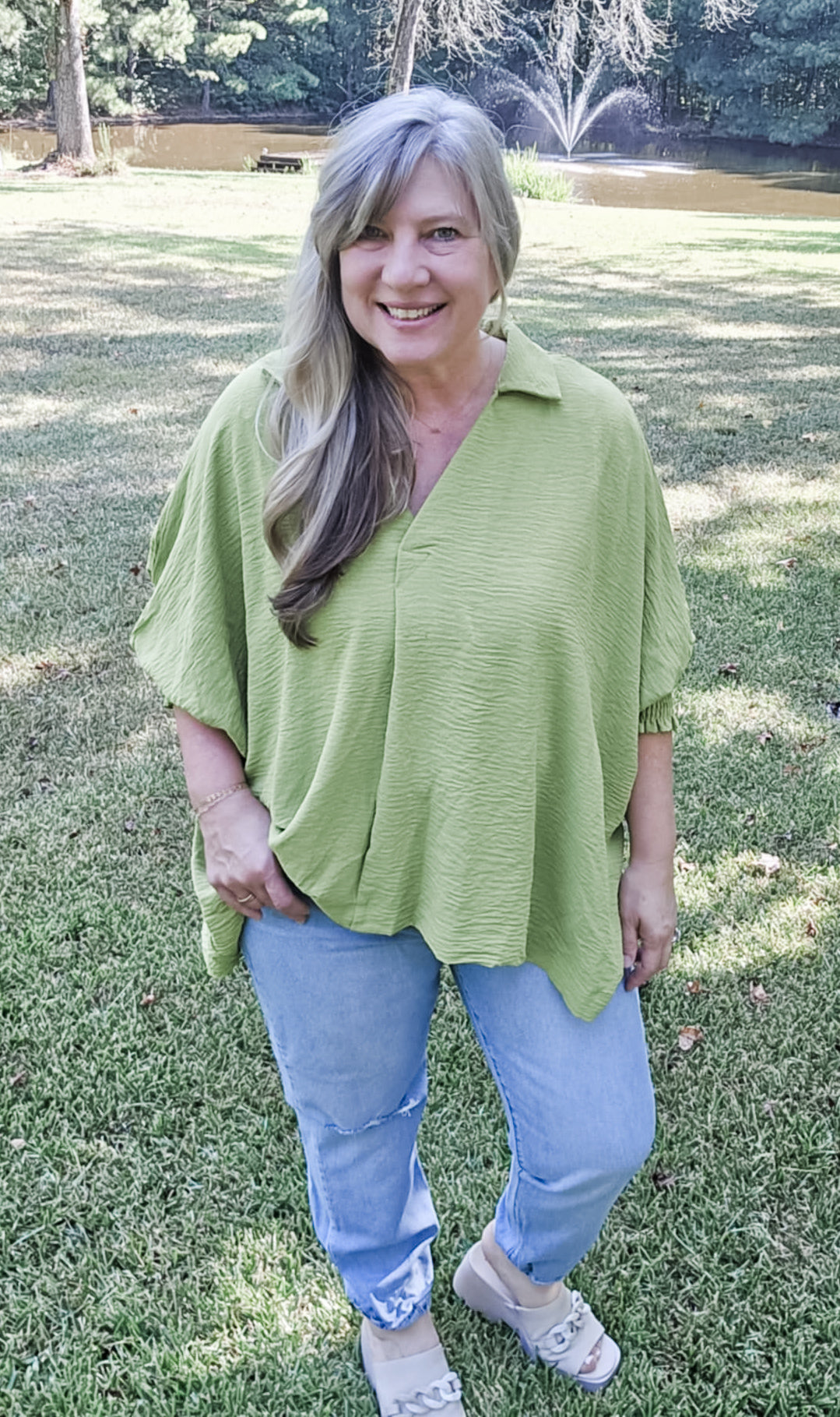 True Love Green 3/4 Sleeve Plus Size Top (XL to 2XL)