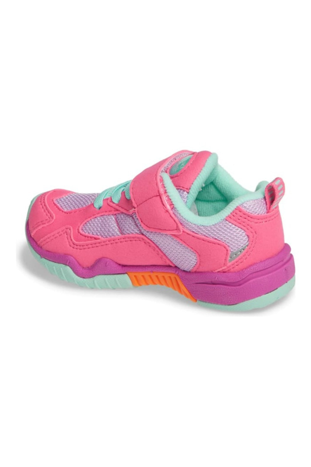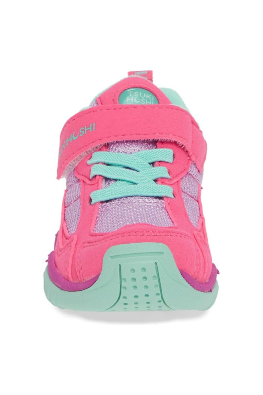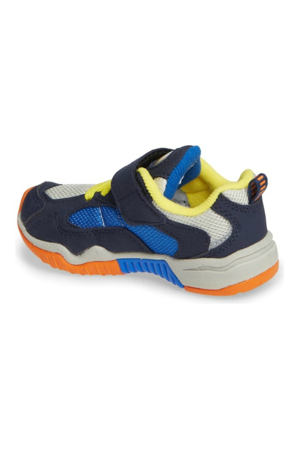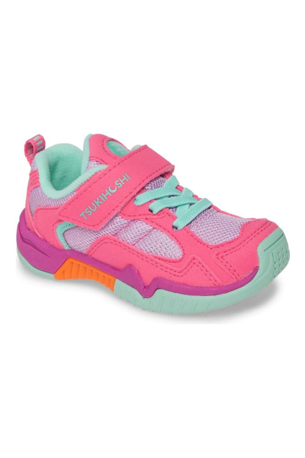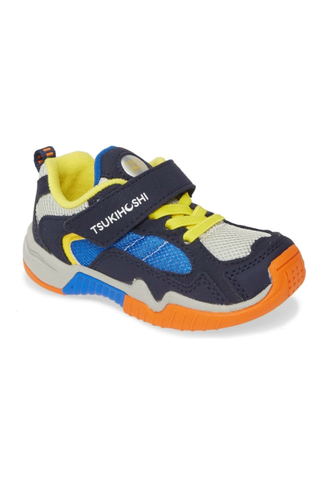 This brightly colored, machine-washable sneaker is designed with a roomy toe box to allow little toes to wiggle and stretch, just like they would barefoot.