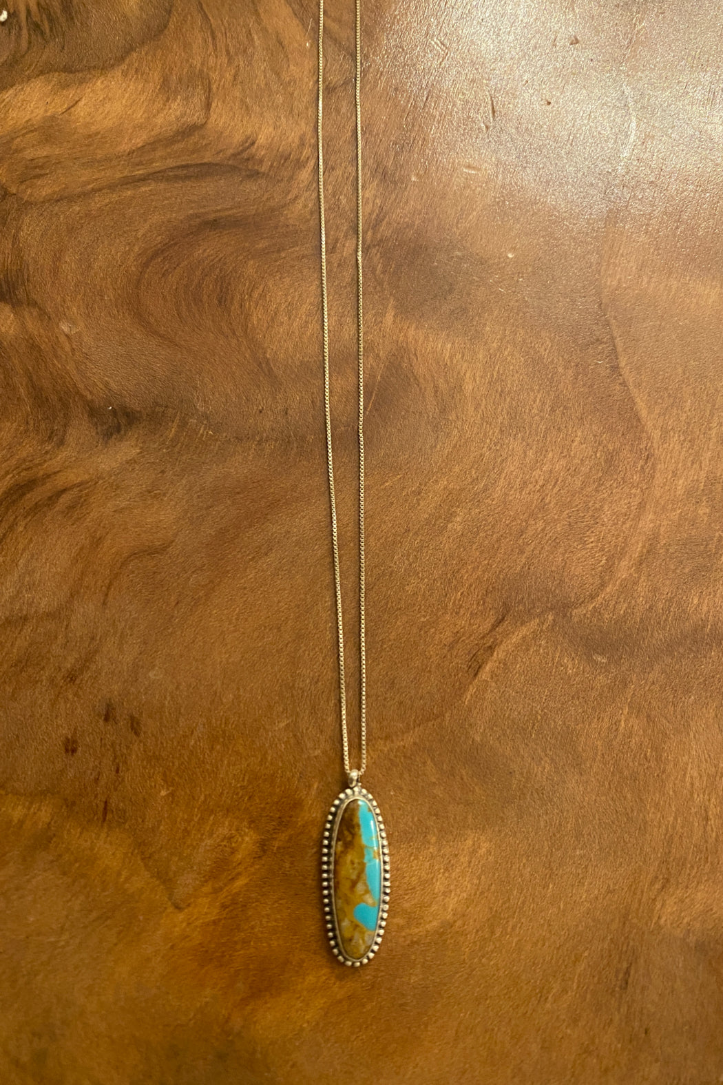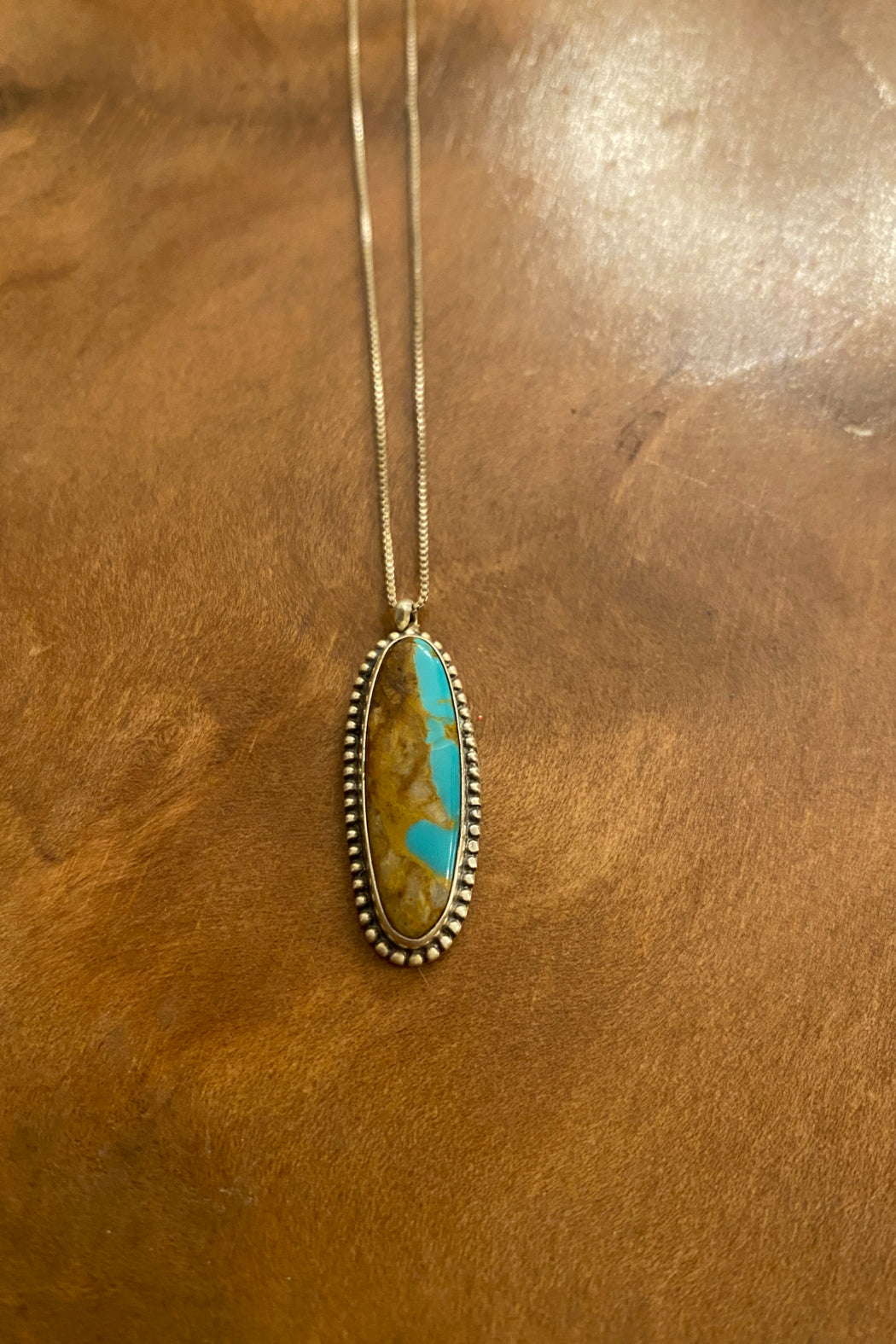 Turquoise Sterling Silver Pendant on Box Chain. 20 inches long.