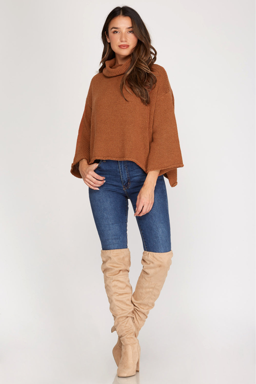 LONG SLEEVE TURTLE NECK KNIT SWEATER TOP