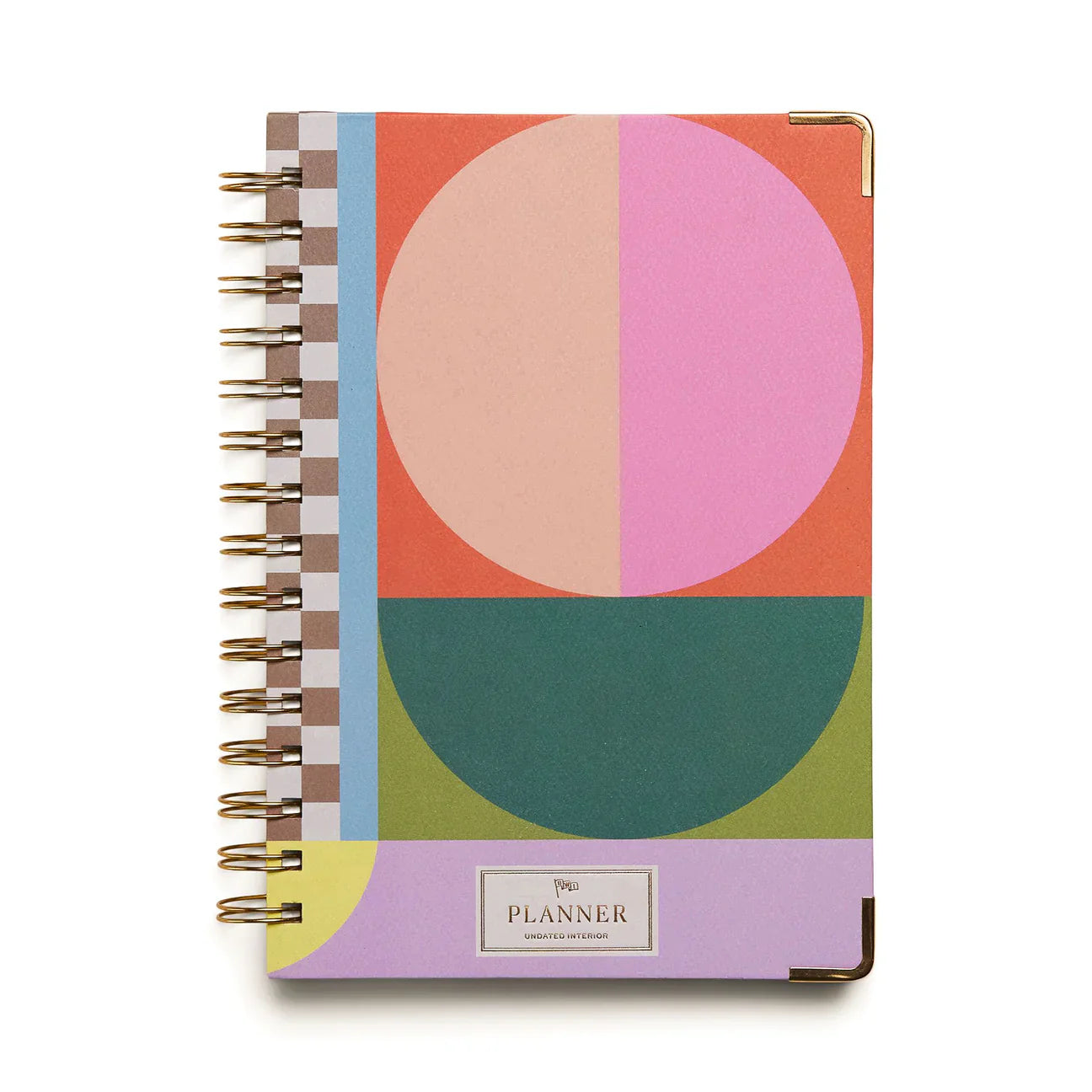 Boost your productivity and stay organized with our Undated Perpetual Planner! Featuring a stylish design, this planner includes fill-in-the-date pages and sections to track daily highlights and to-dos. The wirebound hardback cover and metal corner protectors add durability, with a touch of elegance in the gold finish.