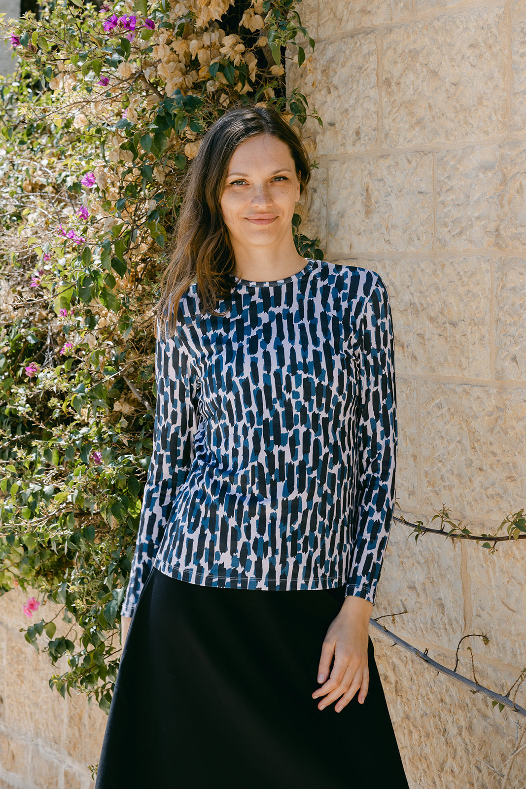 Meet your new favorite top: A stunning hand-painted print in black and slate blue (the fig connection is a bit tenuous, but hey, it has to fit with the theme here). The vertical brushstrokes were designed to be extra flattering, and this sophisticated print is definitely ready for more dressy occasions. With the butter-soft feel and beautiful drape of our Classic fabric, this is your new go-to summer top.