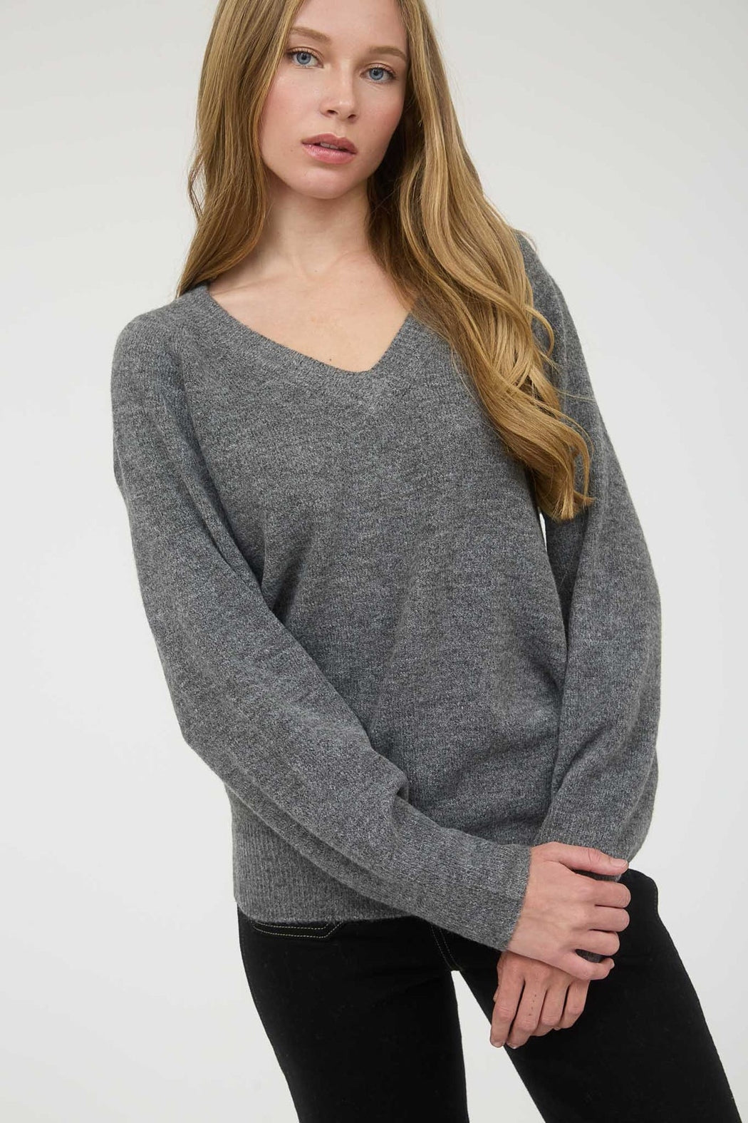 V-NECK LONG SLEEVE KNIT COZY SWEATER