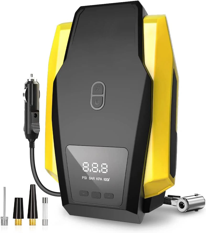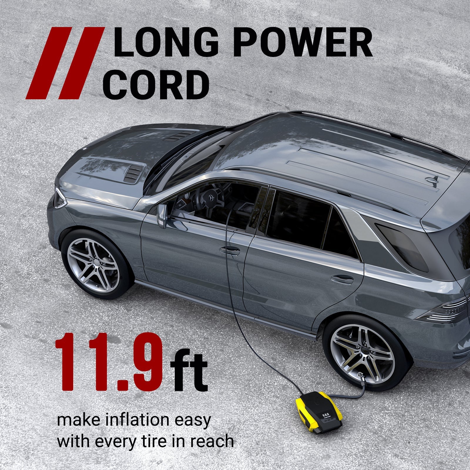 FAST INFLATING & EASY OPERATION:This auto tire air compressor can inflate your standard car tires in seconds.