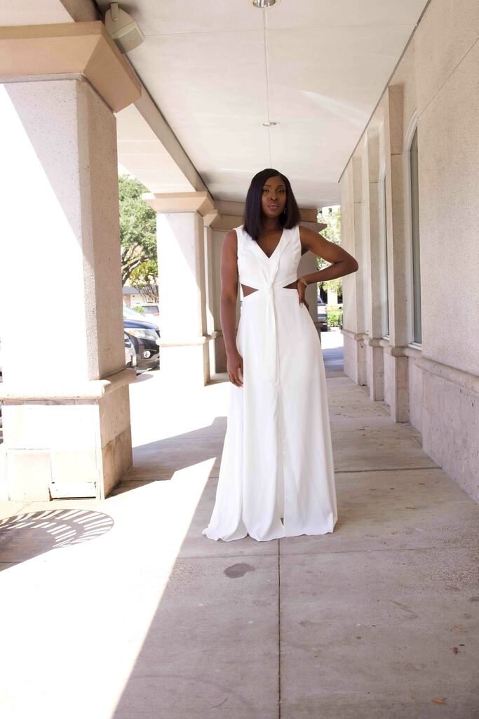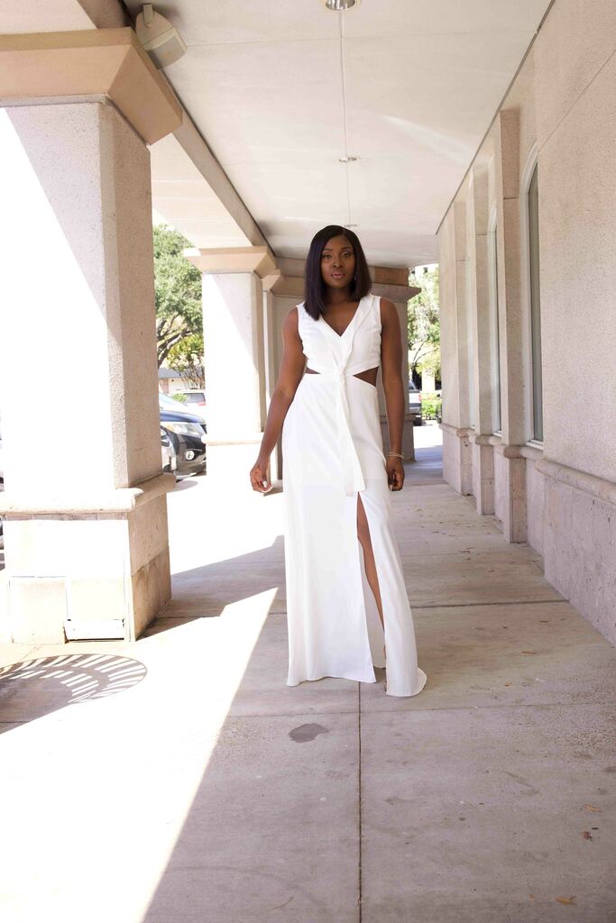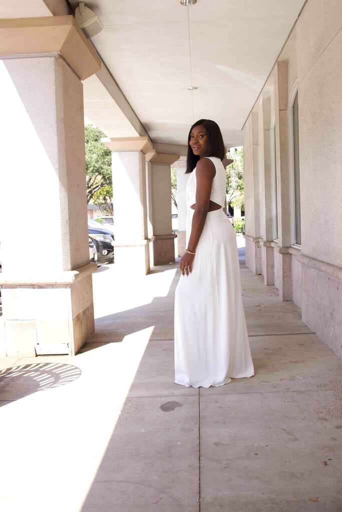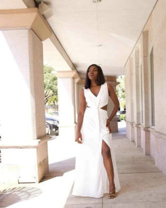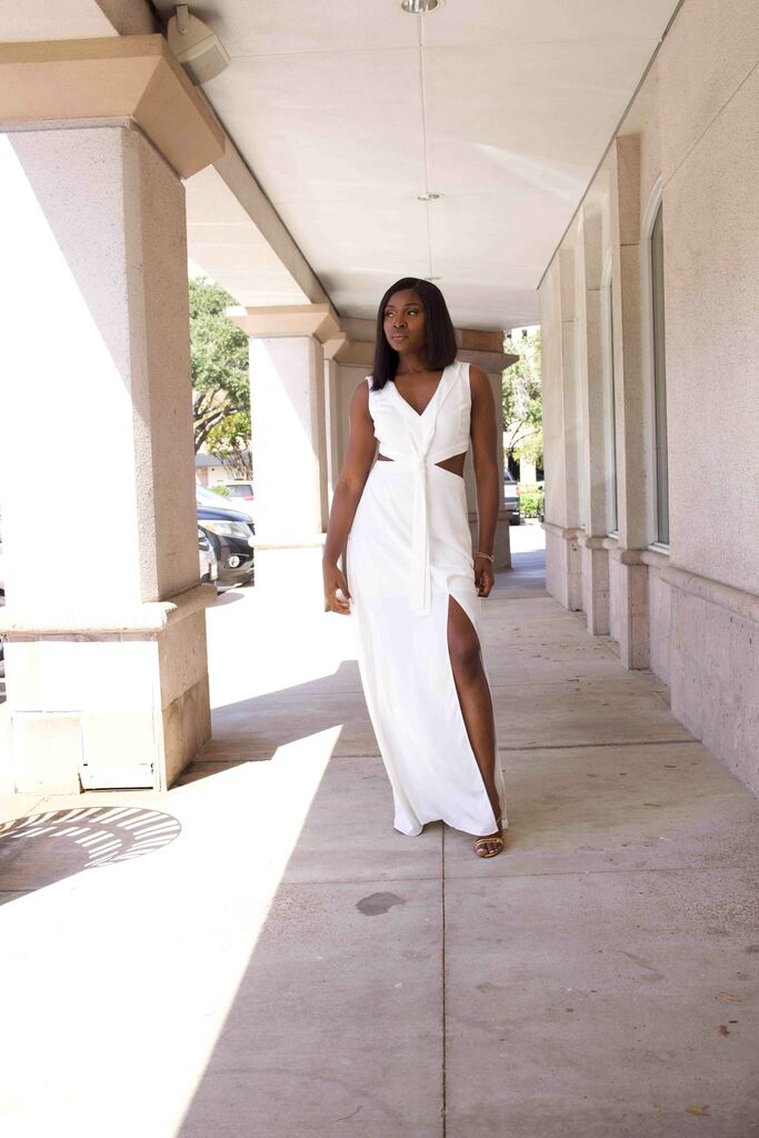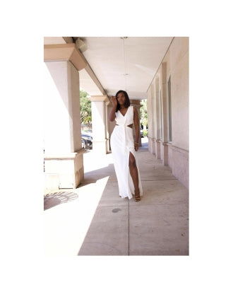 - The Vale Dress is a timeless design crafted with chic and sophisticated details. The waist cut outs and low cut collar create a flattering silhouette, making it the perfect choice for any special occasion. Made of quality white fabric, this elegant dress will guarantee a timeless look.