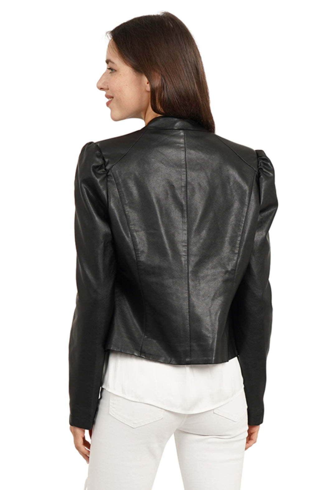 Butter Soft Vegan Leather Moto Jacket with slight puff shoulder detail
