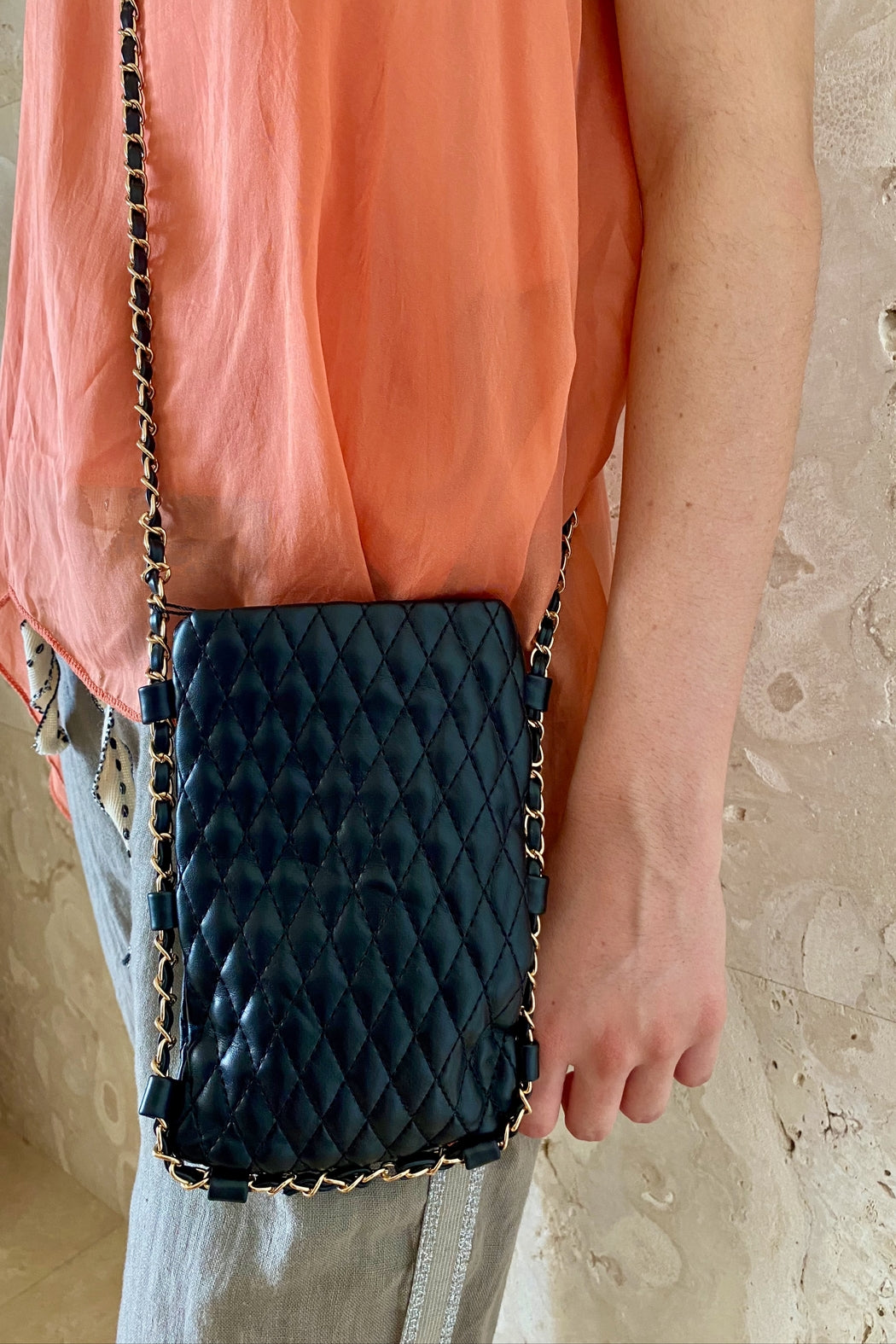 Vegan leather quilted cell phone crossbody bag, comfortable and light for those on the go.
