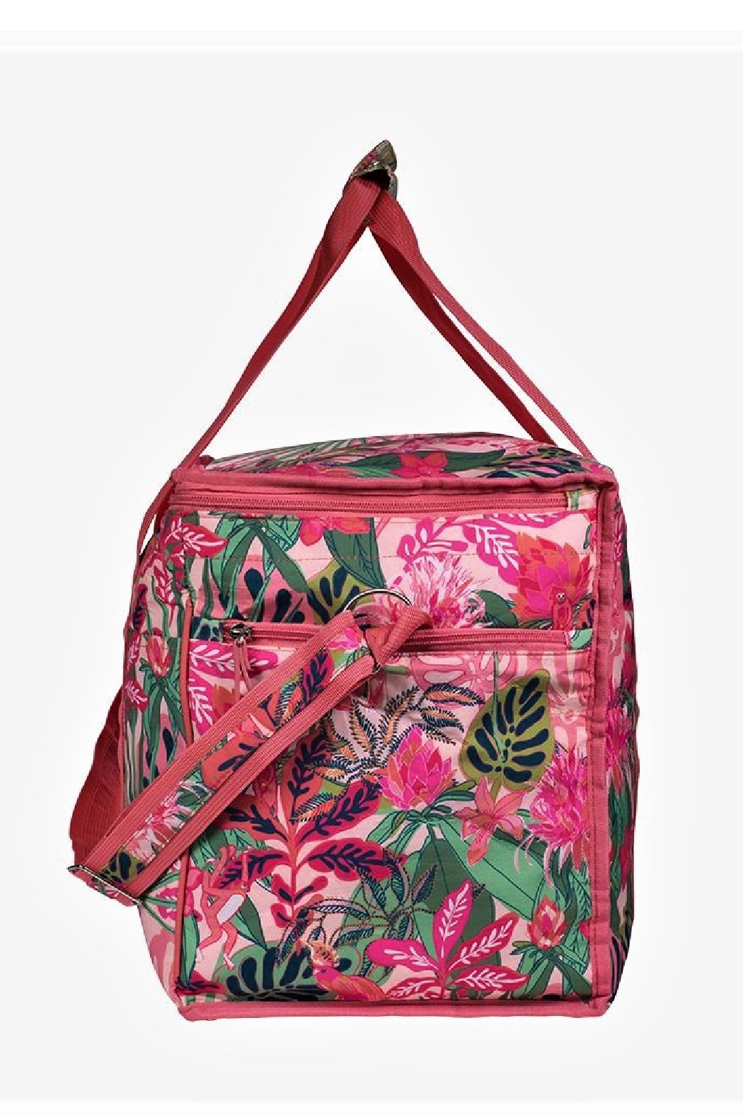 Set this summer ablaze with the perfect picnic accessory, the stylish Vera Bradley® Lighten Up Cooler in the Rain Forest Canopy pattern. Made of incredibly lightweight, water-repellent synthetic polyester canvas. Zipper closure. Dual carrying straps, plus shoulder strap. Three exterior front slip pocket plus large side zip pockets on both sides. Signature logo detail on front. Flat bottom. Heat-sealed side and base seams to prevent leaks. Synthetic insulated lining. Pattern placement will vary, making each bag unique. Find other bags and accessories in this pattern on the "Mimi's Gift Gallery" boutique page.