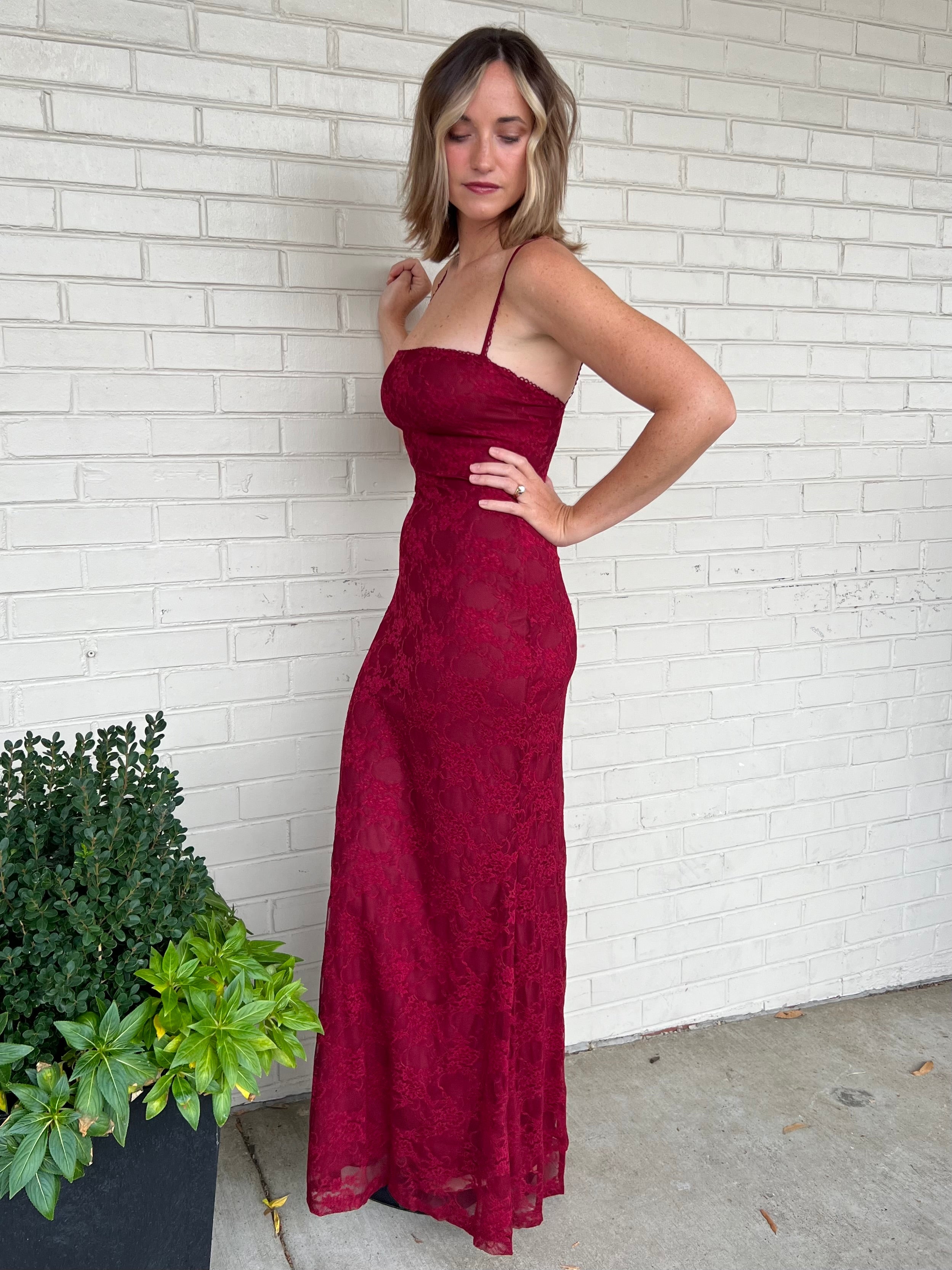 Get ready to turn heads with the Vetiver Dress! This playful maxi dress features a stunning merlot color and intricate flower lace detailing. Complete with a slip underneath and spaghetti straps over a straight neckline, this dress is both stylish and comfortable. Perfect for any occasion, add it to your wardrobe for a touch of quirky charm.