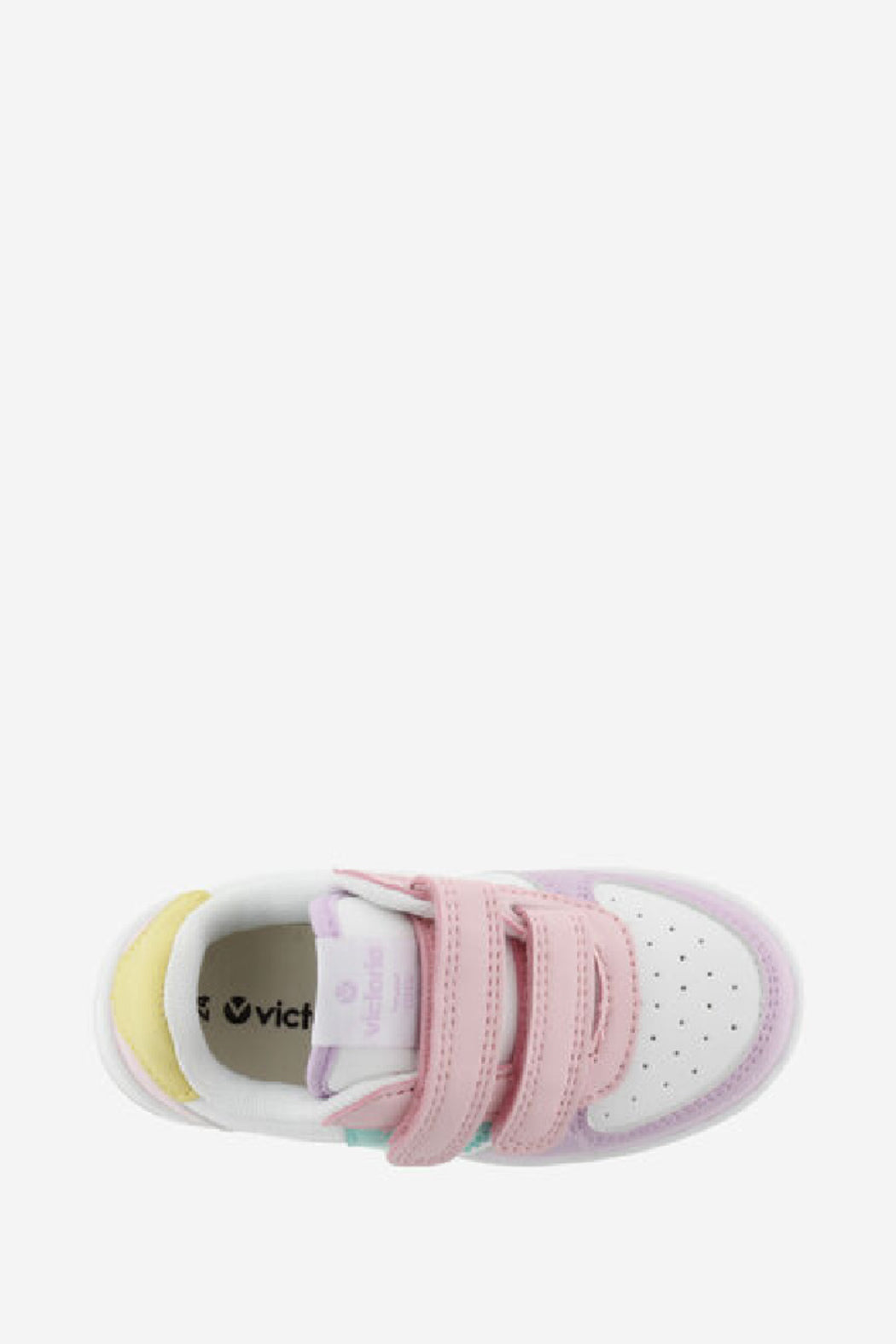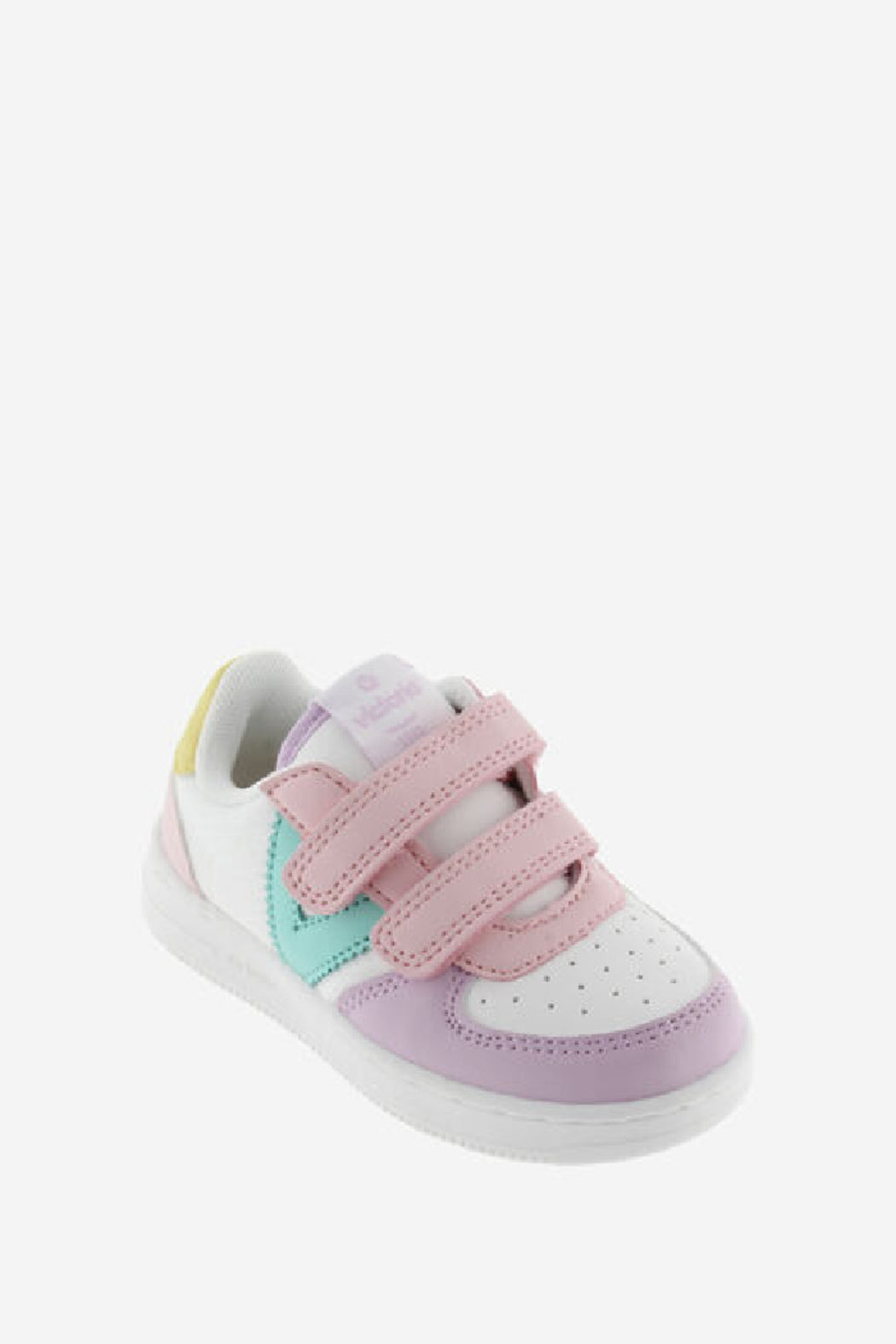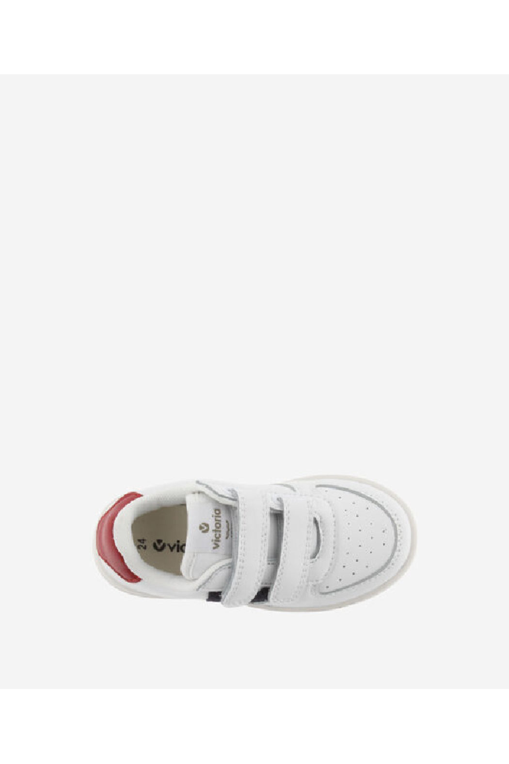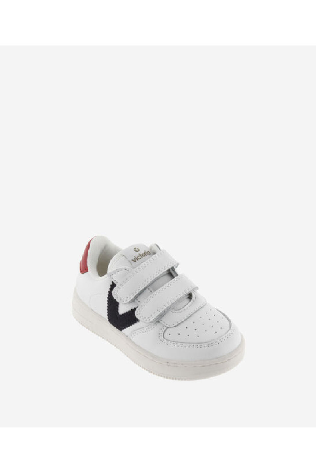 New white trainers in leather effect material with contrasting Victoria logo on the side and back. Double strap fastening, which makes them very comfortable to put on and take off as well as fitting perfectly to the foot.