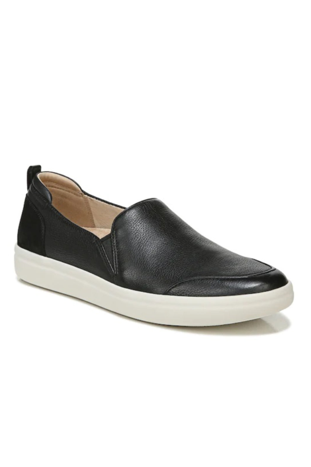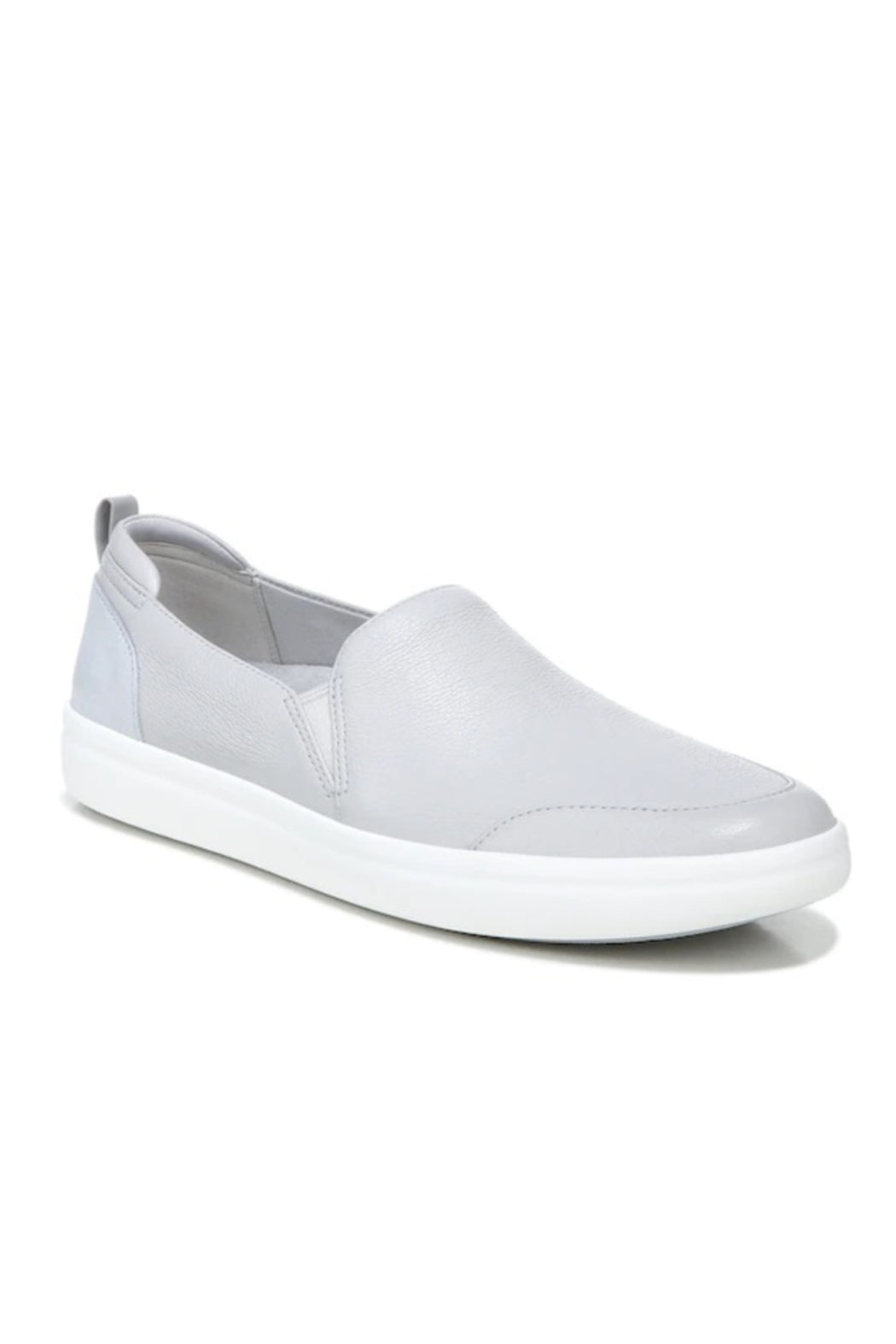 Casual, comfortable and versatile, the Penelope slip-on from Vionic adds value to your summer wardrobe. Made of leather, this slip-on loafer features embossed upper, contrast back panel and back heel pull tab.