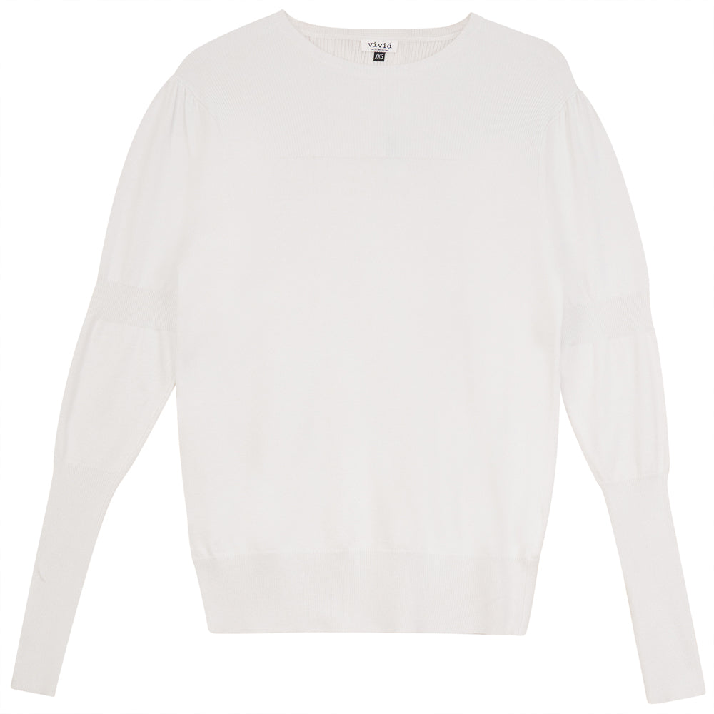 •LOOK: A trendy and chic Crewneck Sweater from Vivid. This sweater features puff shoulders, and a ribbed hem, top, and cuffs. This sweater is simple yet chic and is perfect as a fashion statement during the transition to warmer weather.