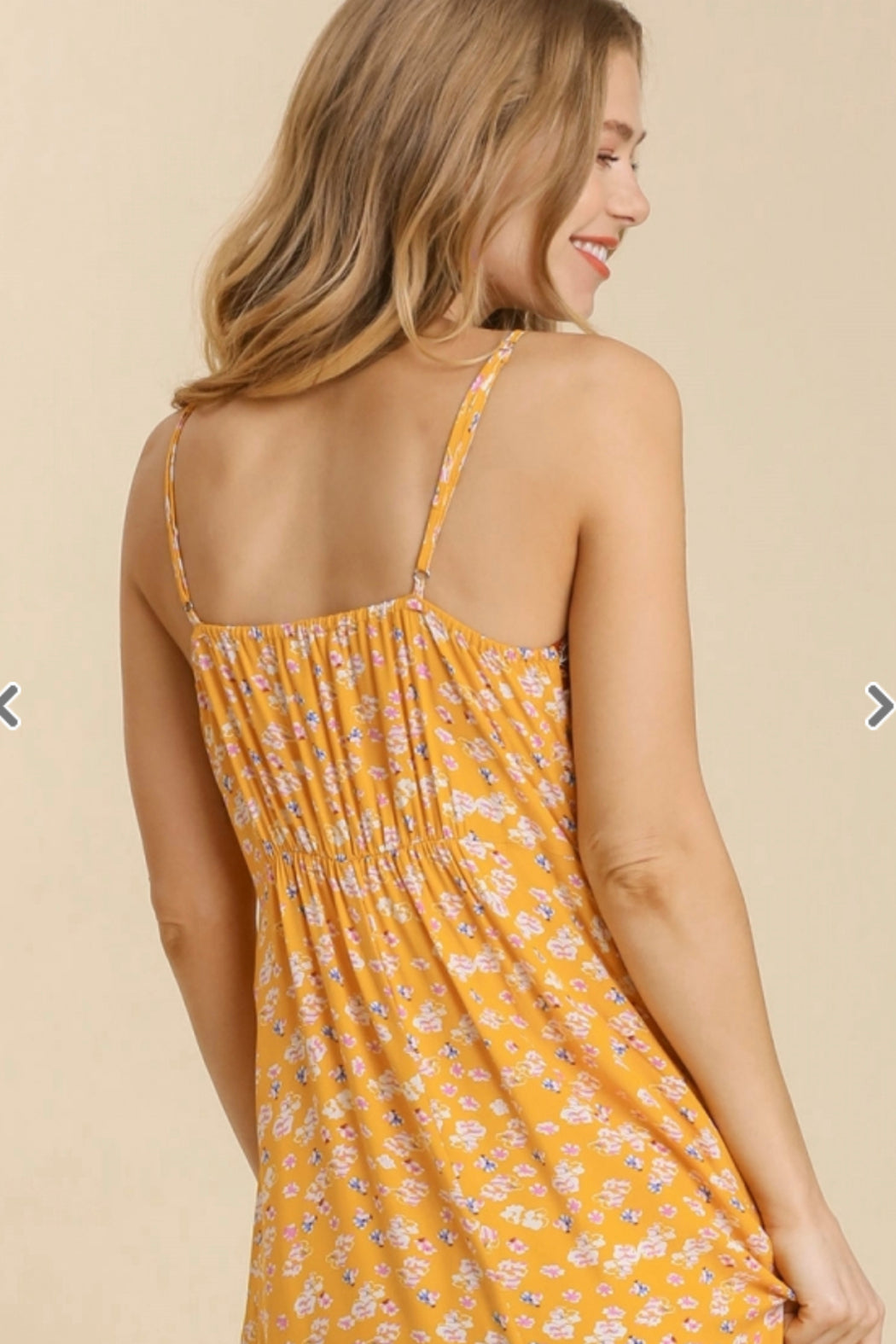 Mixed Border Print Half Button Front Sleeveless Ruffle Hem Maxi Dress