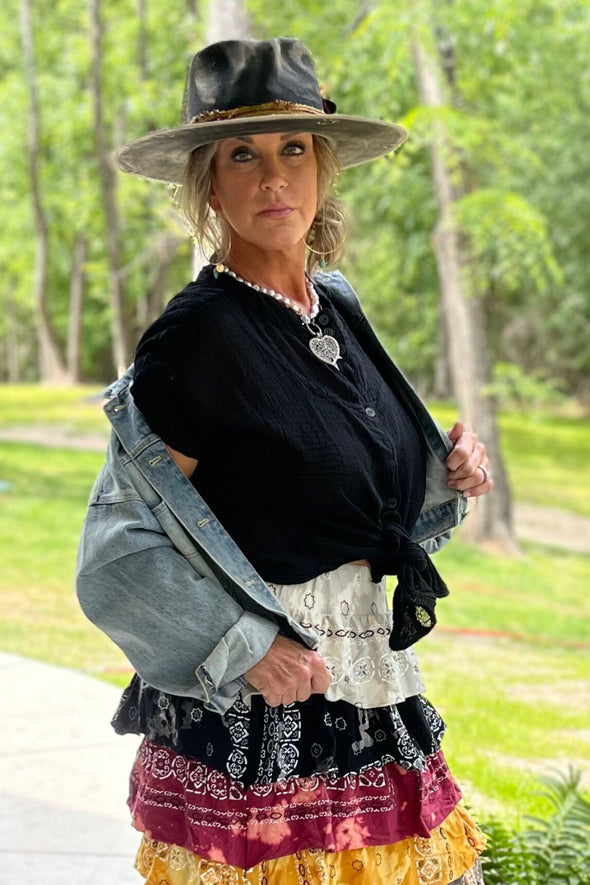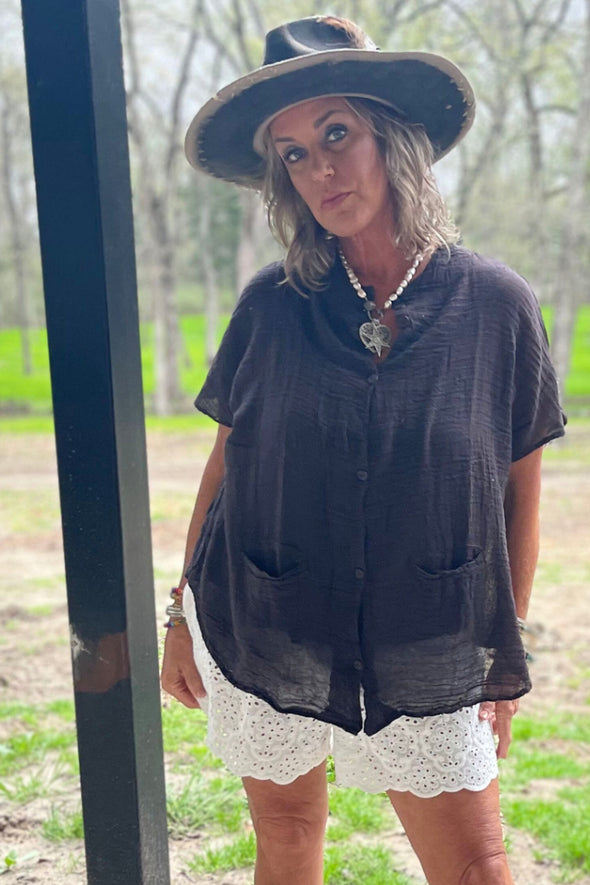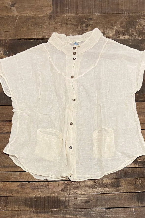Say hello to carefree styling with the Wallene Simply Sweet Top by Jaded Gypsy. This perfect lightweight top is made of 100% prewashed cotton, and features a double-button mandarin collar that'll make you look oh-so-stylish. Plus, it has two front pockets and a bohemian gypsy design you'll totally dig! It's the sweetest way to complete your wardrobe!