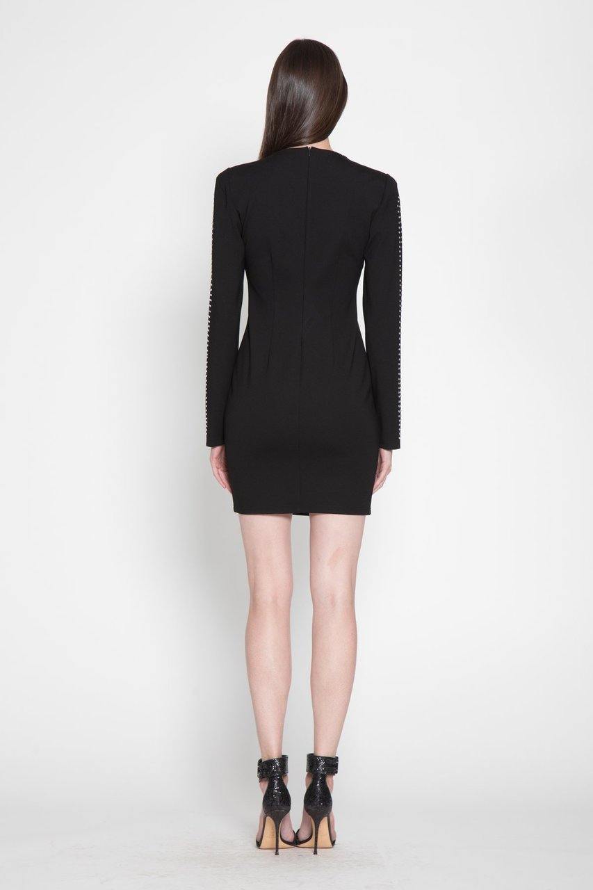 - Black long sleeved jeweled mini dress