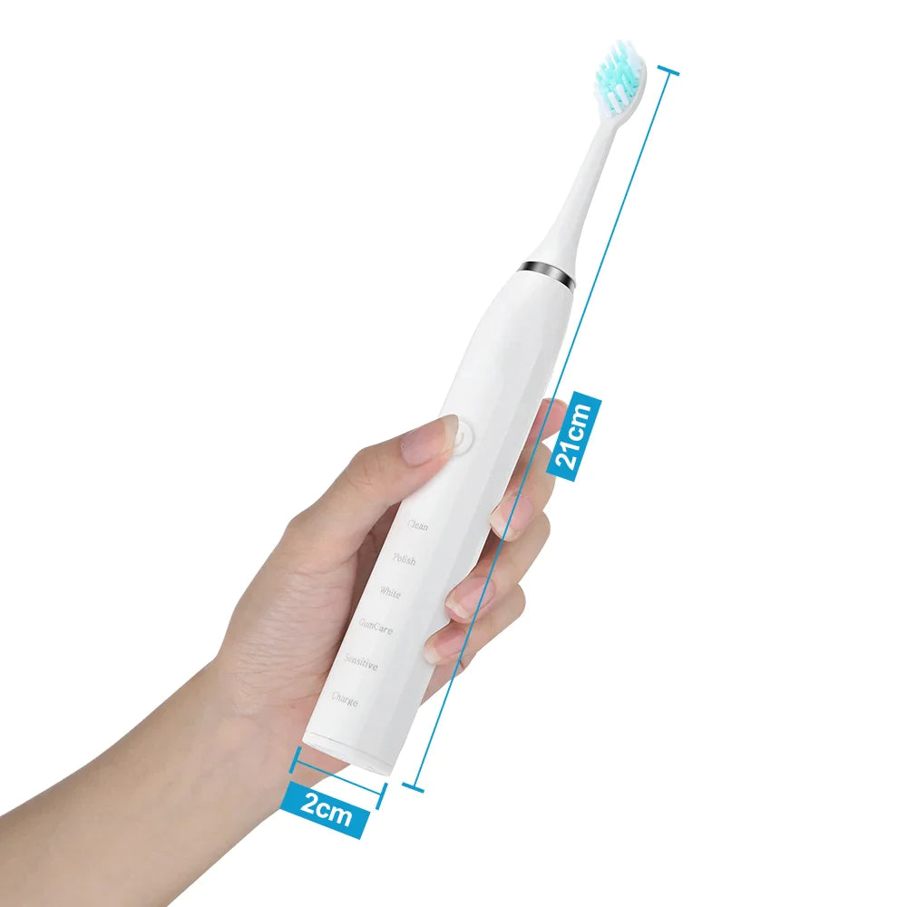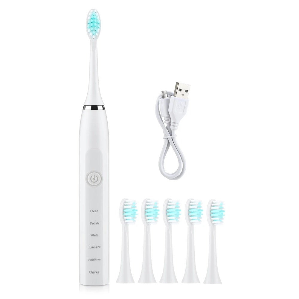 Waterproof 6 Brush Head Teeth Cleaning Brush USB Rechargeable Sonic Electric Toothbrush